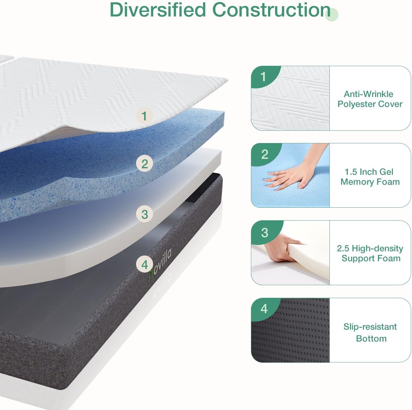 KEEP COOLING & HIGH DENSITY FOAM – The novilla 4-inch tri-fold mattress is crafted with 1.5 inches gel distended memory foam and 2.5 inches high density base foam.Our CertiPUR-US certified full foam folding mattress maintains a constant temperature,stays cool and provides balanced body support, improves blood circulation to relax the whole body while you enjoy the sleep.