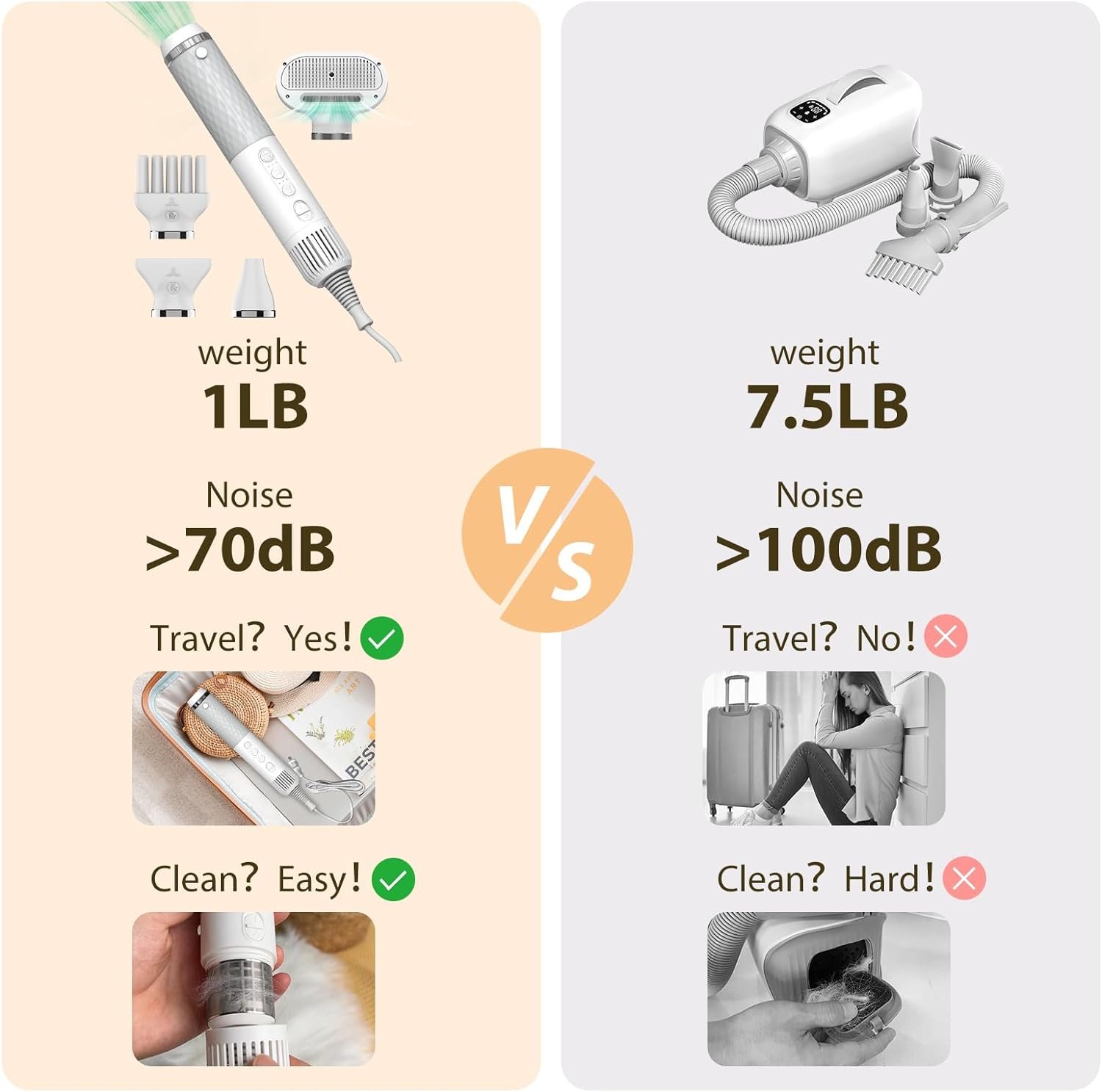 Dog Grooming Blow Dryer: Size:11.8*1.77inch; Weight:1lb; Power cord length: 7.9ft