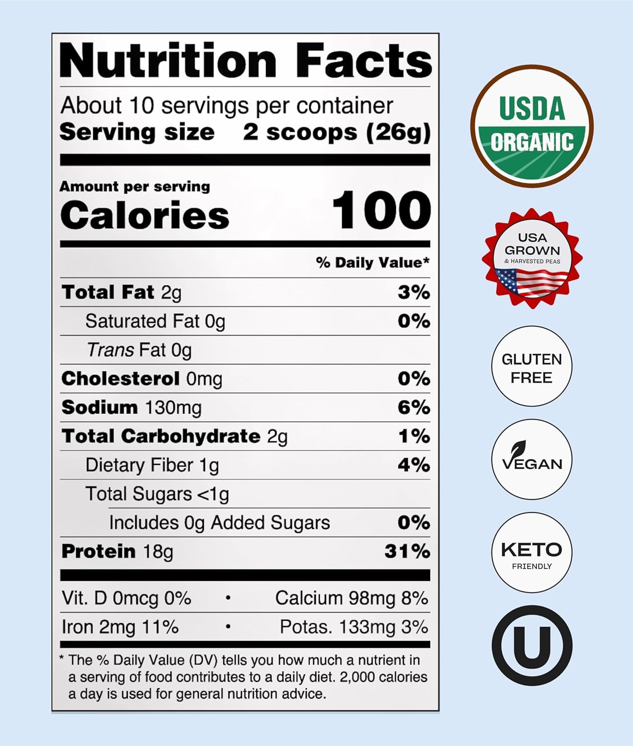 Nutrient-Packed and Low Calorie: Enjoy the benefits with certified organic plant-based protein from yellow field peas, grown on glyphosate-free American farms. Packed with 9/9 essential amino acids, low net carbs, and zero grams of sugar – only 50 calories per scoop. A delicious way to fuel your body without compromise