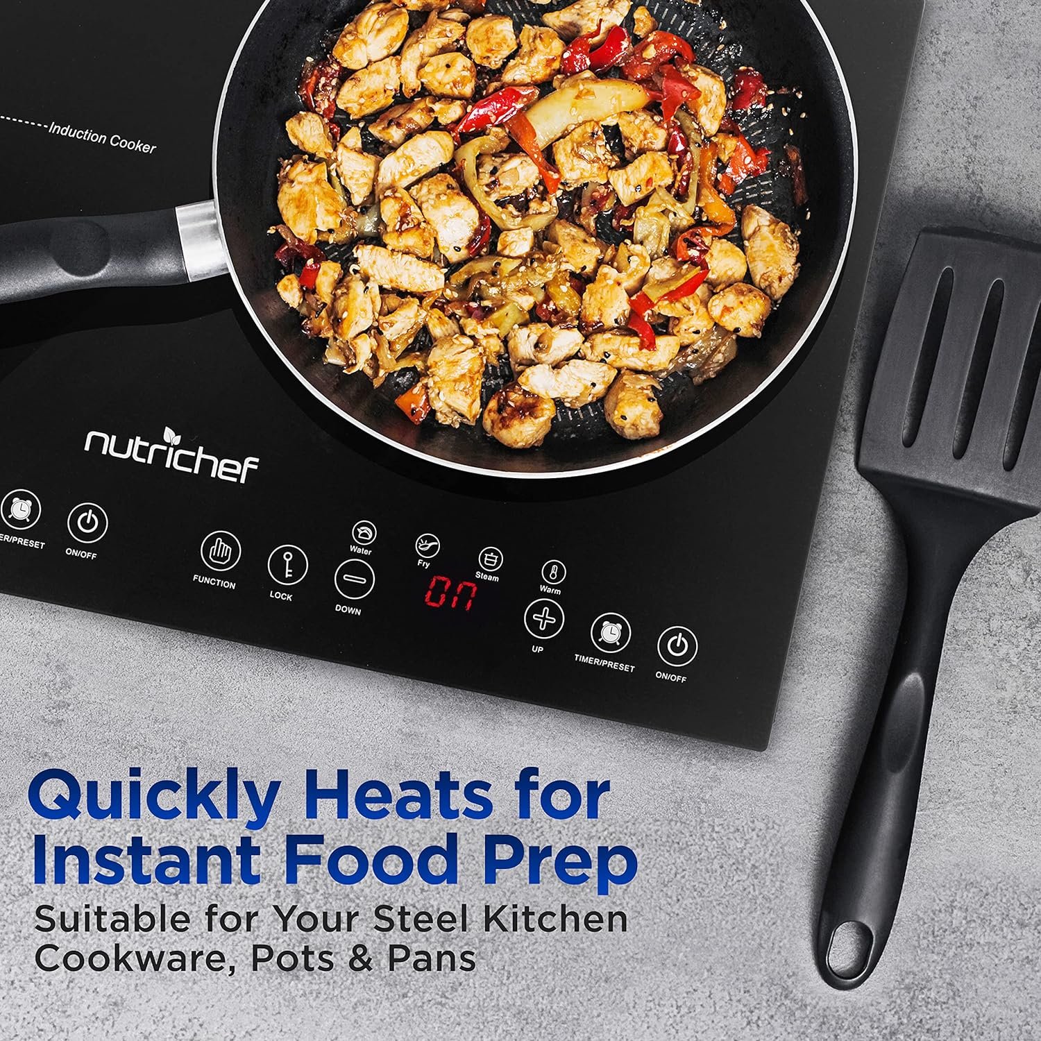 ENERGY EFFICIENT: This heavy duty 120v Electric Induction cooktop cooks food by using electromagnets so no heat is lost between the cooking surface & the pot which makes it highly energy-efficient & it also makes cooking a lot easier & faster