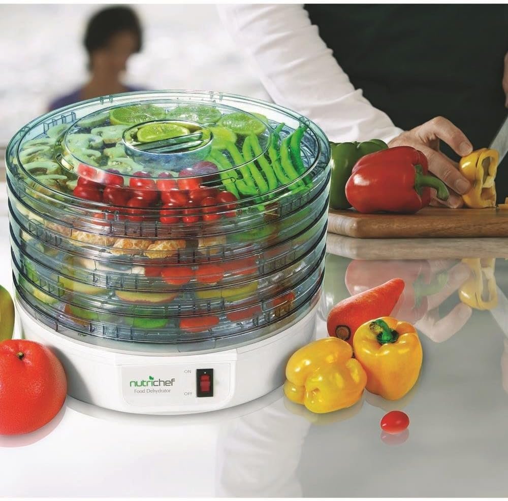 NutriChef Electric Countertop Food Dehydrator – Multi-Tier High-Heat Circulation Professional Food Preserver, Fruit, Vegetable Dryer, Meat or Beef Jerky Maker w/ 5 Stackable Trays – AZPKFD12
