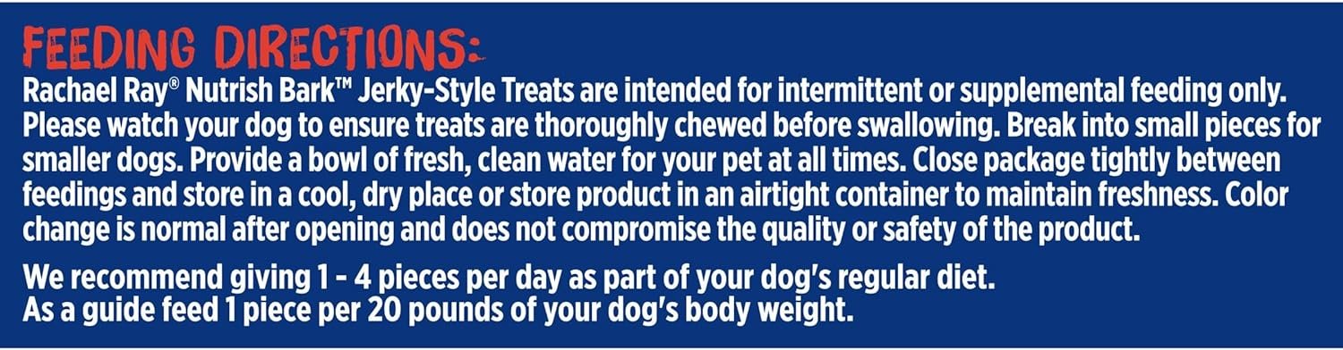 Contains four (4) 11 oz. pouches of Rachael Ray Nutrish Bark jerky-style treats for dogs Real beef is the #1 ingredient
