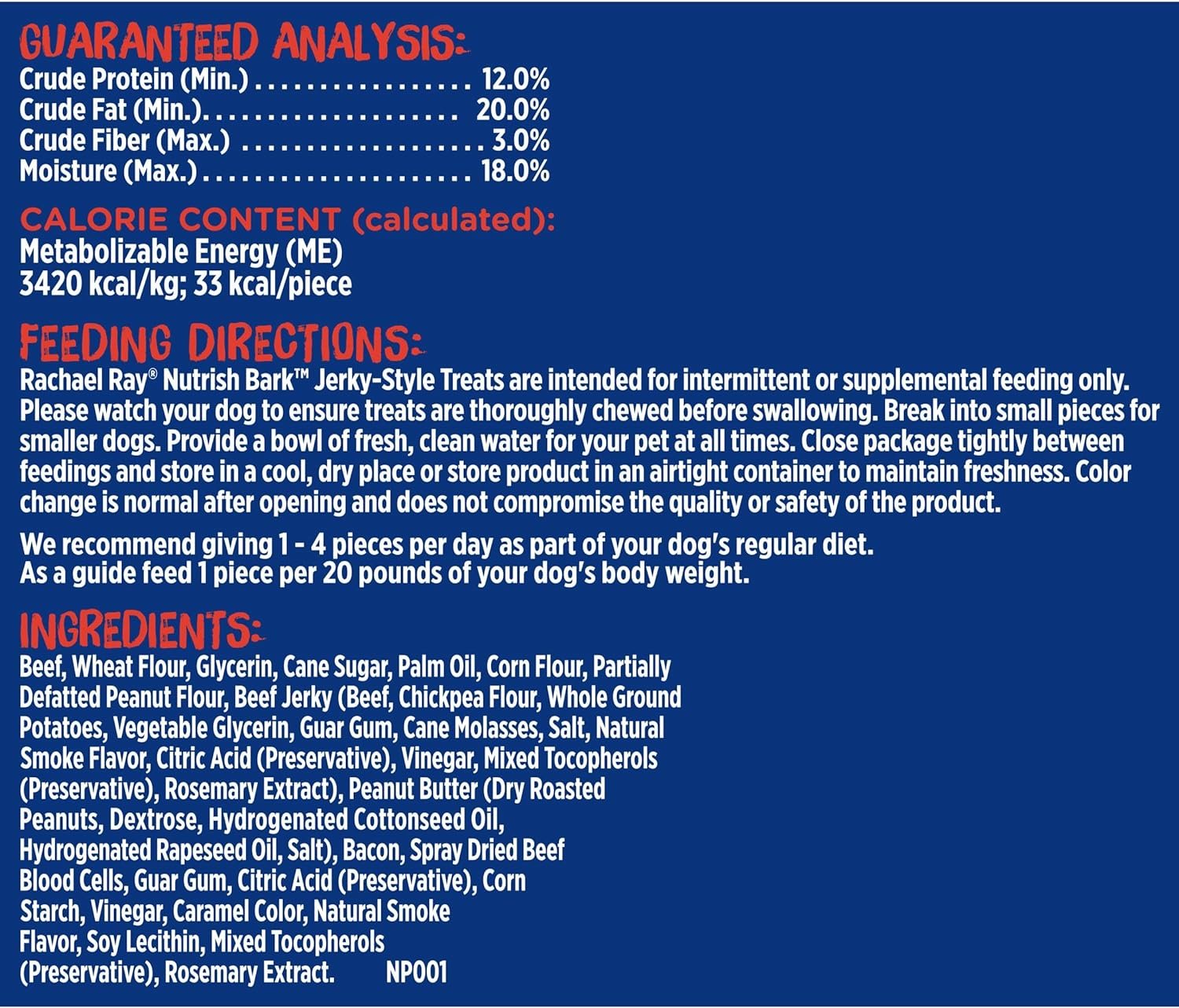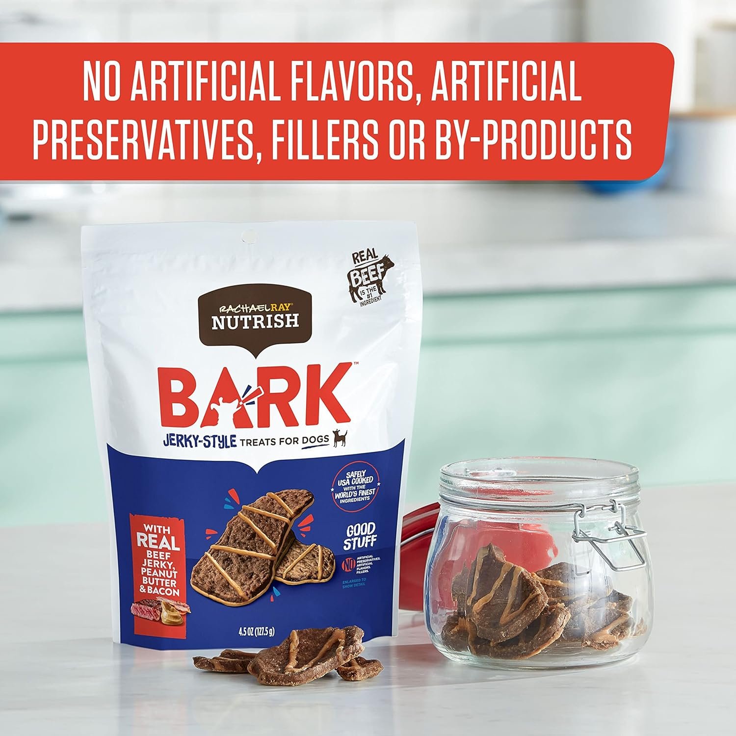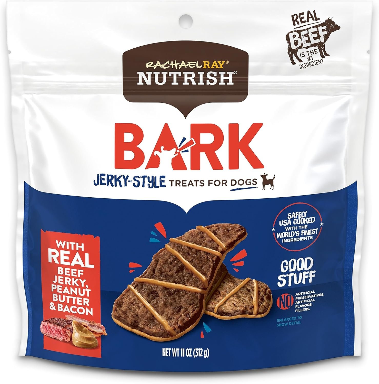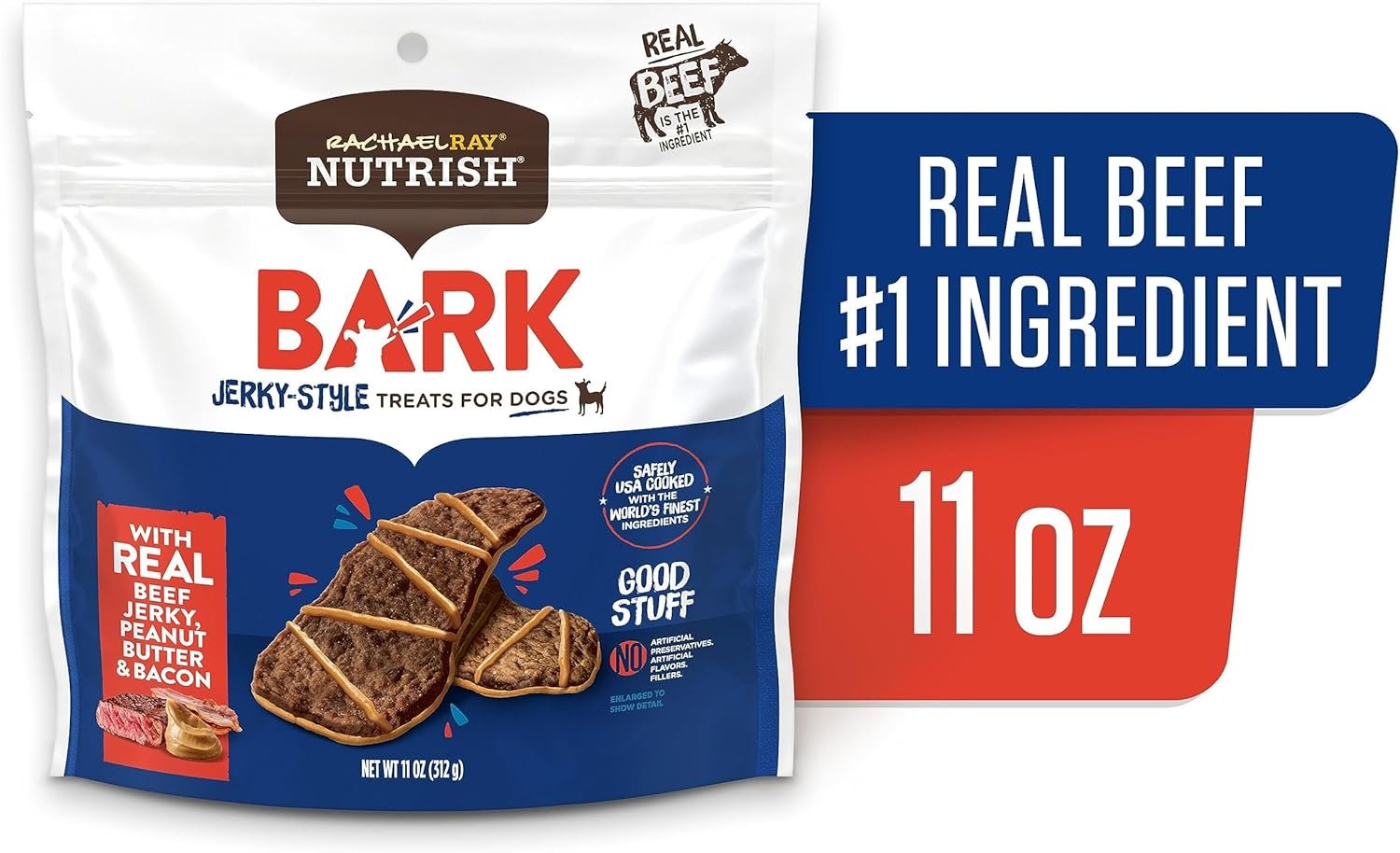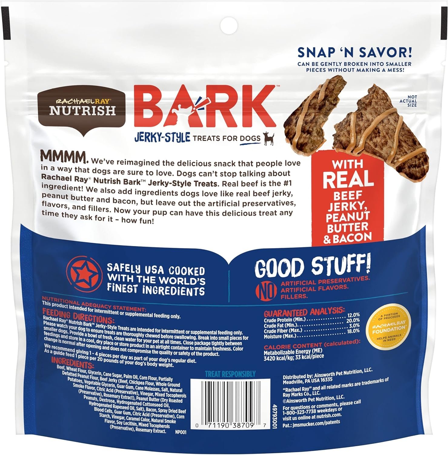 Nutrish Rachael Ray Bark Jerky-Style Dog Treats with Real Beef Jerky, Peanut Butter & Bacon, 11 Ounce (Pack of 4)