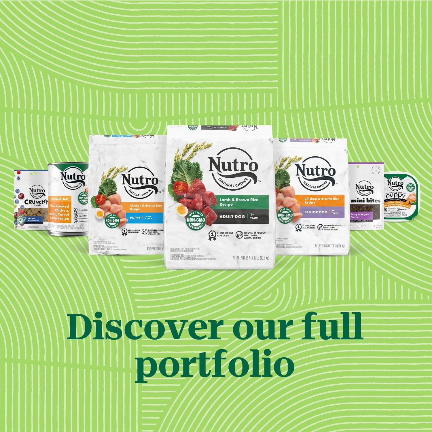 NUTRO NATURAL CHOICE Small Bites Adult Dry Dog Food, Chicken & Brown Rice Recipe is rich in nutrients, full of flavor, and made with wholesome grains and fats to promote healthy energy. Featuring high-quality chicken as the first ingredient, NUTRO NATURAL CHOICE Small Bites contain no artificial flavors or colors, no artificial preservatives, and no corn, wheat, or soy protein*. Perfectly sized for dogs that prefer smaller kibble, these delicious small bites are made in the USA with quality ingredients from around the world that have been carefully sourced from a trusted network of farmers and suppliers. NUTRO is committed to safeguarding the source of natural ingredients by working with farmers to protect and improve soil health so we can continue to grow healthy pets for years to come. * Trace amounts may be present due to potential cross-manufacturing