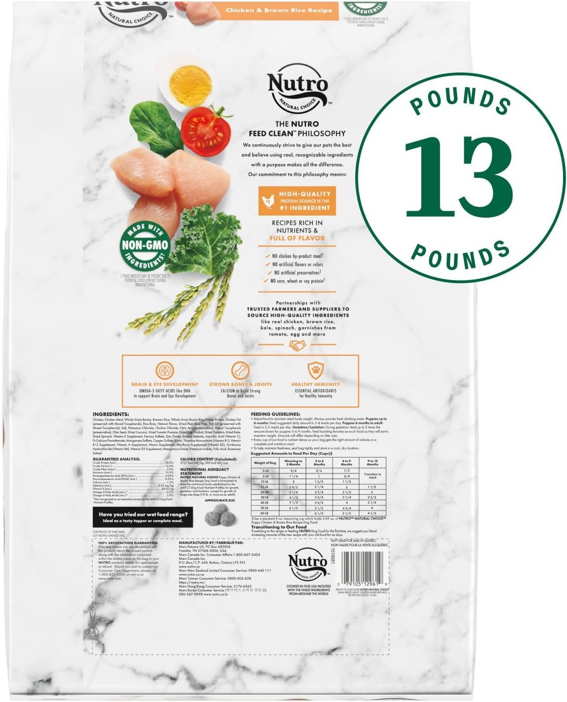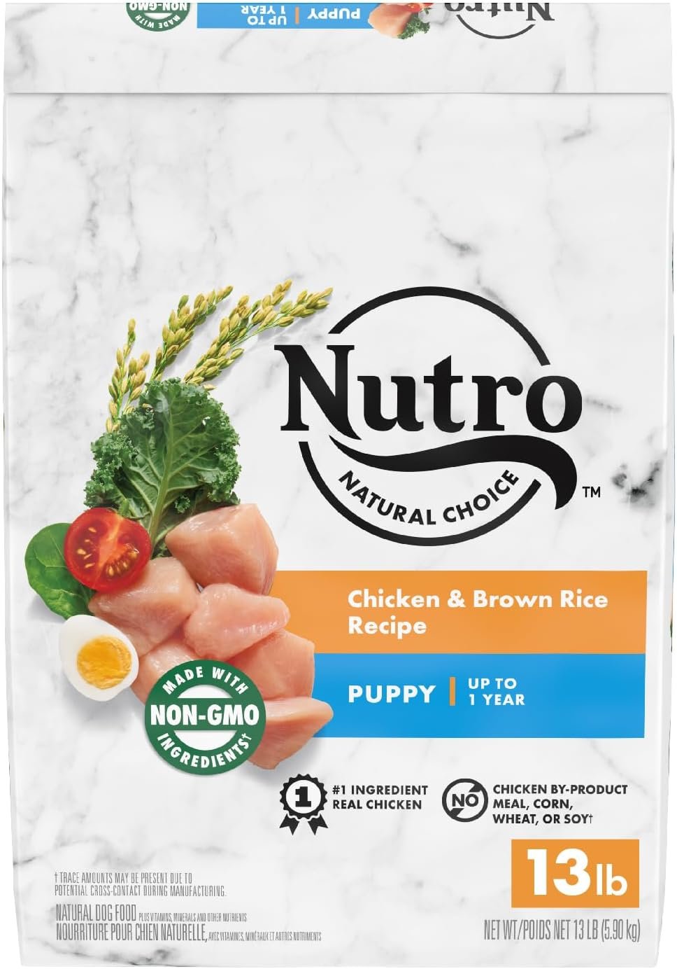13 lb. Bag: Contains one (1) 13 lb. bag of NUTRO NATURAL CHOICE Puppy Dry Dog Food, Chicken & Brown Rice Recipe Dog Kibble