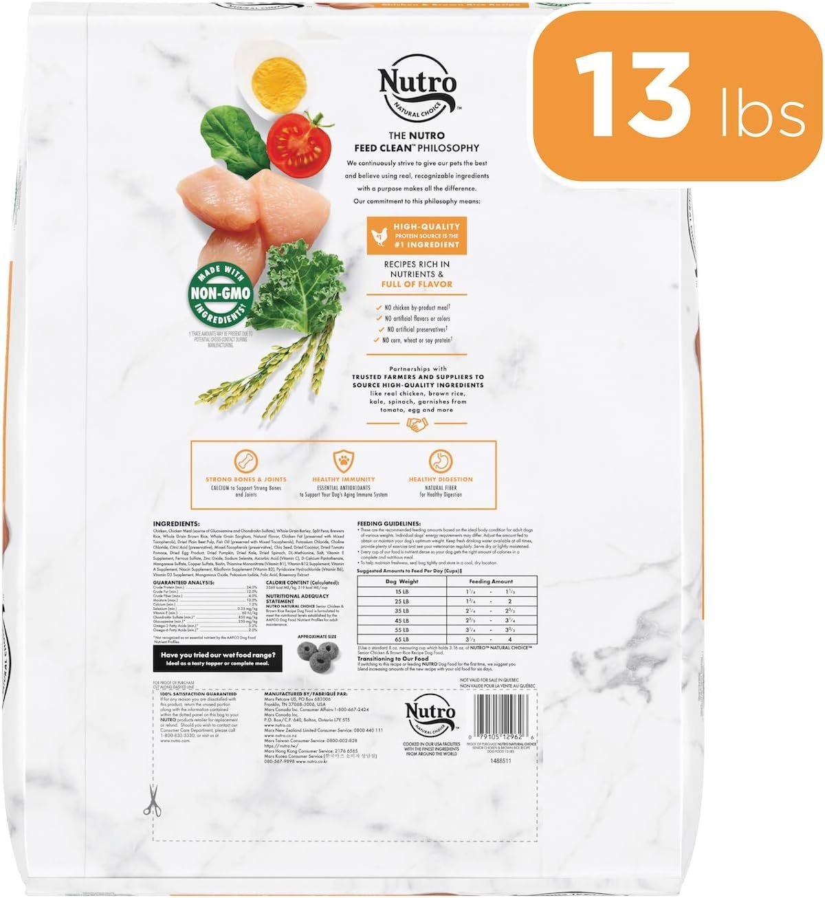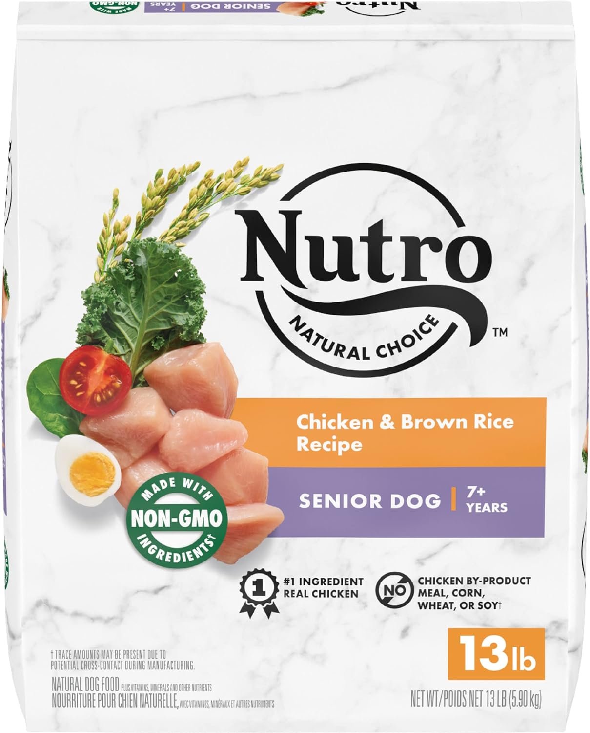 Contains one (1) 13 lb. bag of NUTRO NATURAL CHOICE Senior Dry Dog Food, Chicken & Brown Rice Recipe for senior dogs ages 7 and older; real chicken is the #1 ingredient