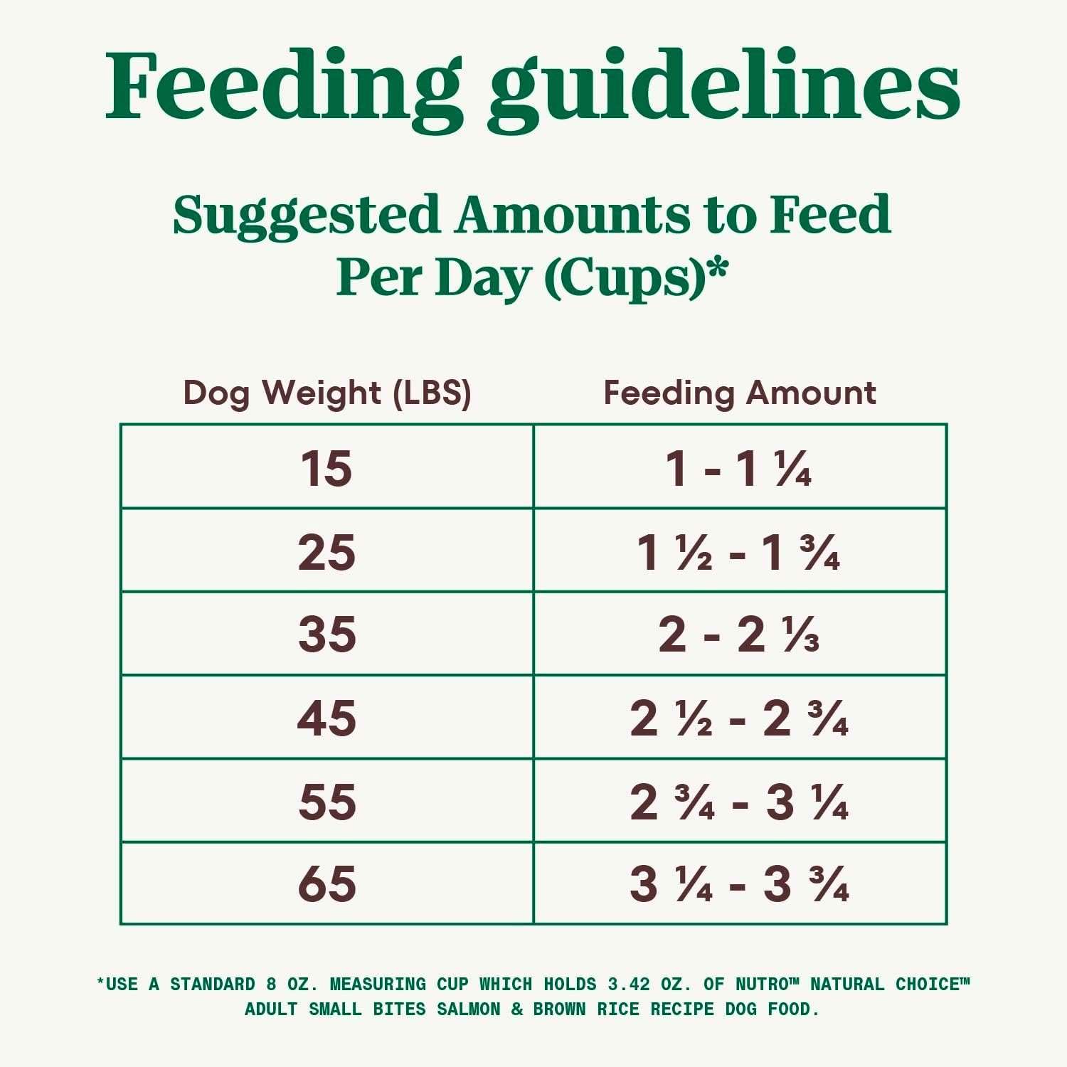 Contains One (1) 28 lb. Bag of Nutro Natural Choice Small Bites Adult Dry Dog Food, Salmon & Brown Rice Recipe.