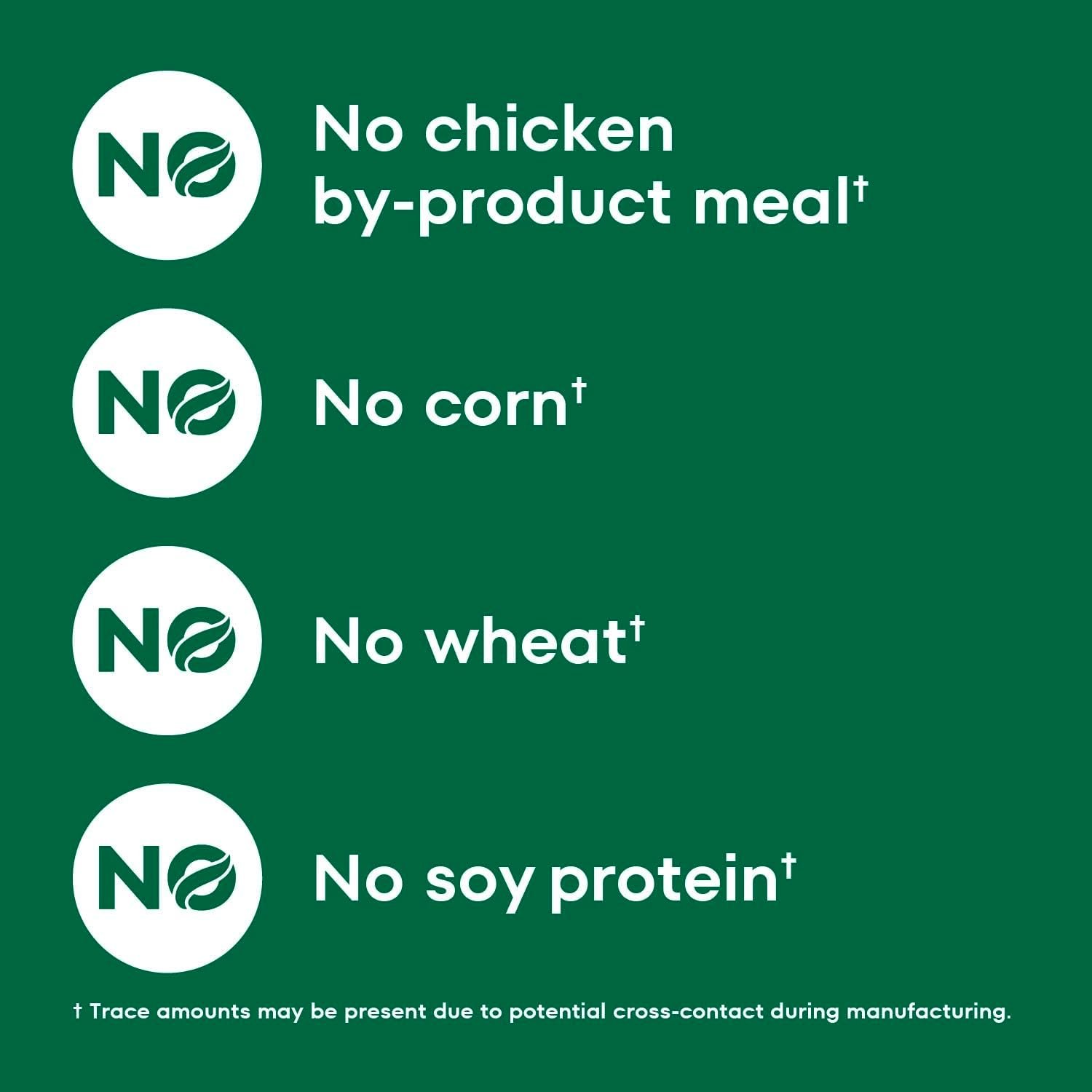 Quality Recipe: This dry dog food is crafted with no chicken by-product meal, no artificial flavors or colors, no artificial preservatives, no corn, wheat, or soy protein, although trace amounts may be present due to potential cross-contact during manufacturing.