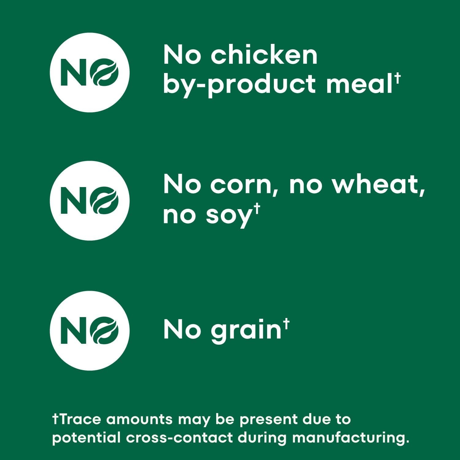 No Artificial Flavors or Preservatives: Proudly made with real chicken, and contains no chicken by-product meal, no artificial flavors or colors, no artificial preservatives, no corn, wheat, or soy* *Trace amounts may be present due to potential cross-contact during manufacturing
