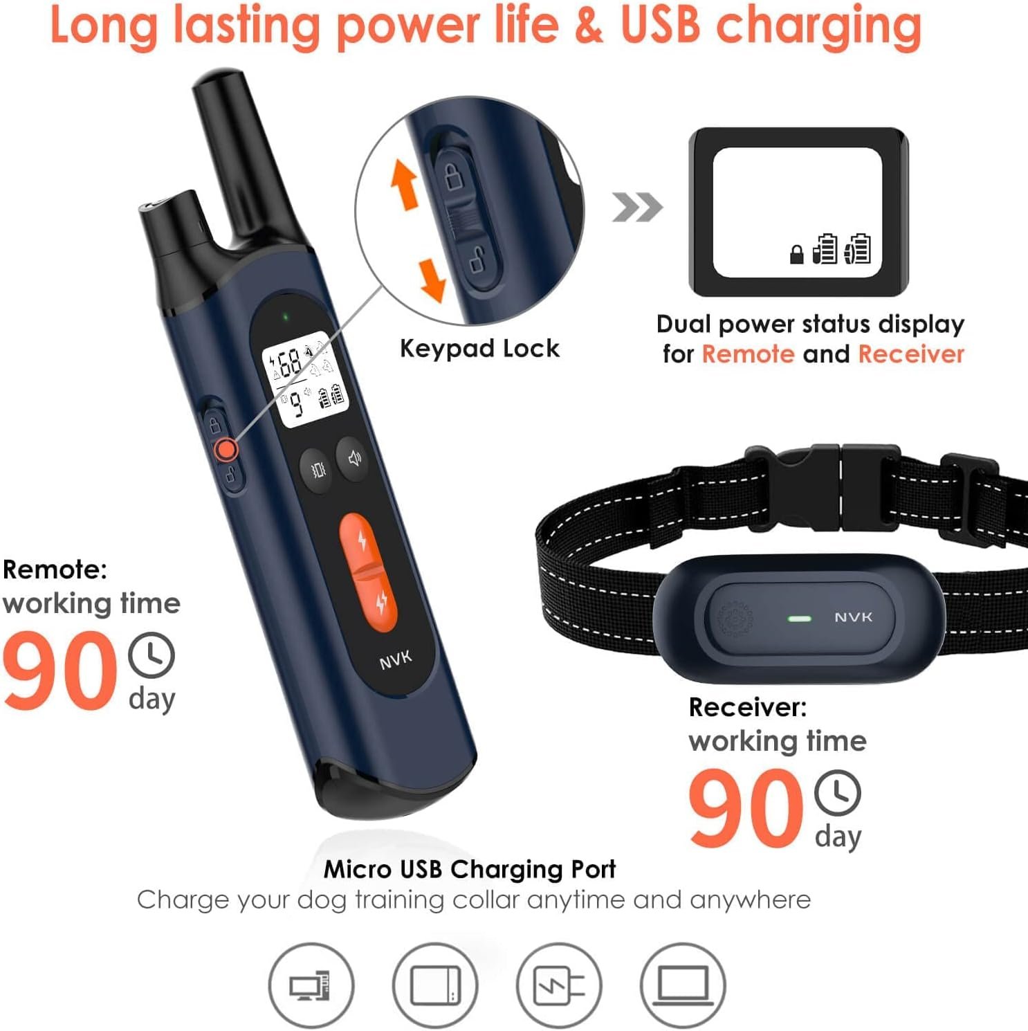 Security Lock: NVK dog training collar with safety keyboard lock. Prevents misoperation on the remote, without worrying about accidental shock.