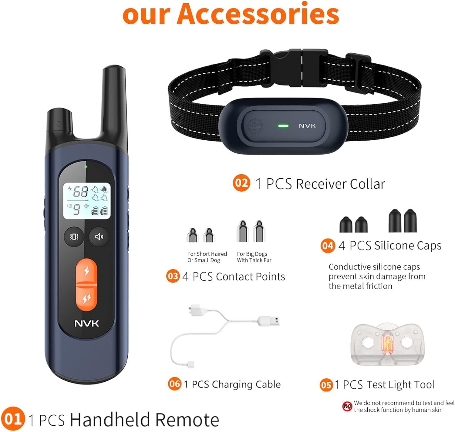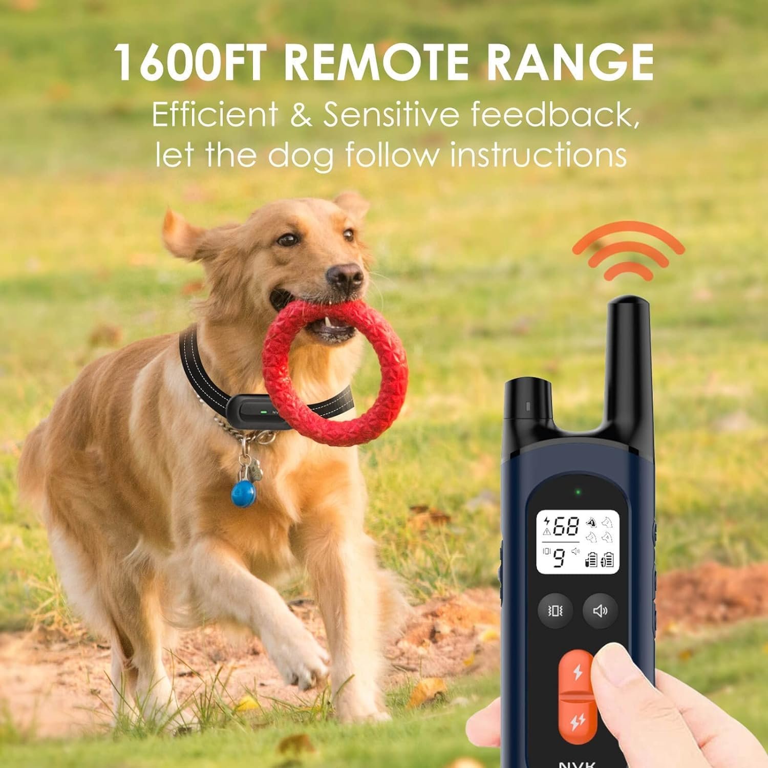 1600ft Remote & Waterproof: NVK shock collar for small/medium/large dogs, range up to 1600ft, waterproof level IPX7.