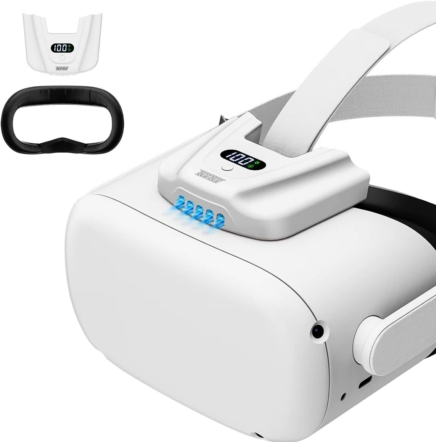 NVNV VR Fan for Oculus Quest 2,Anti-fogging Air Circulation Cooler Fan with Facial Interface,Sweat-Proof Face Cover,VR Accessories for Quest 2, Suitable for Fitness,Workout & Intense VR Games,White