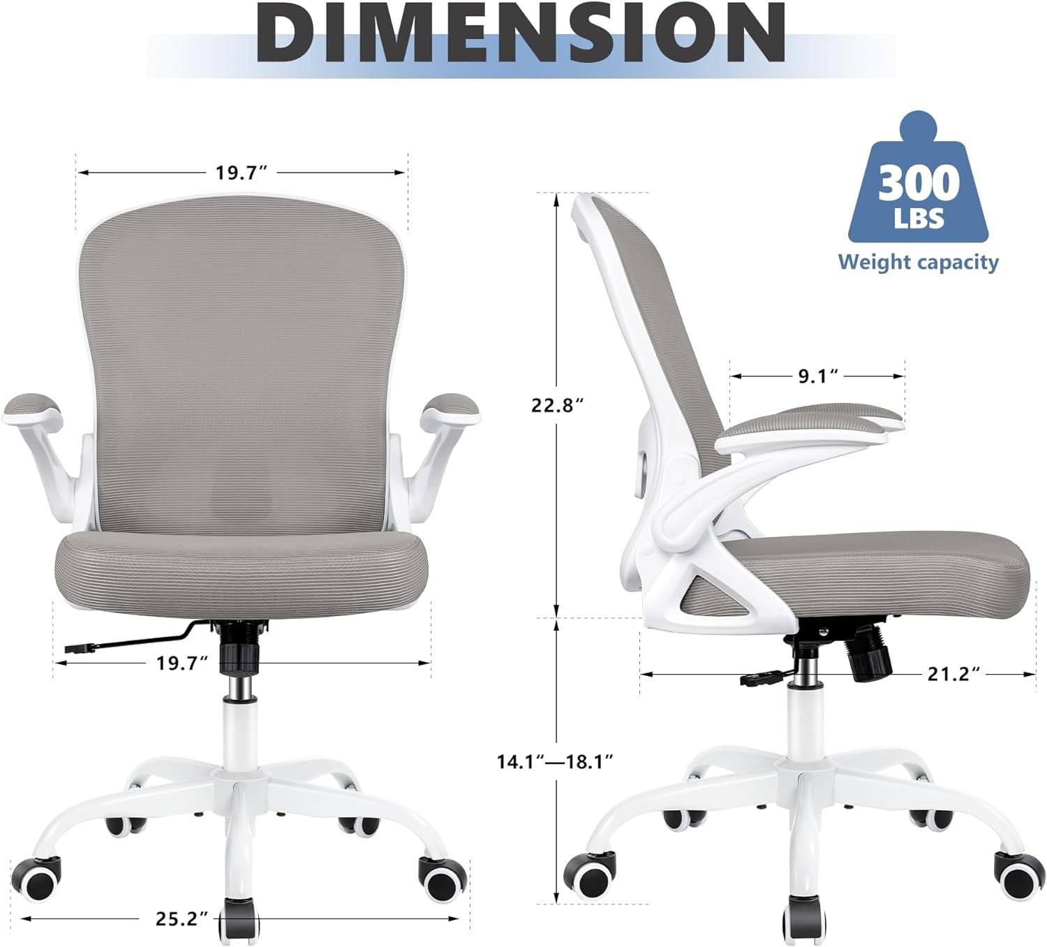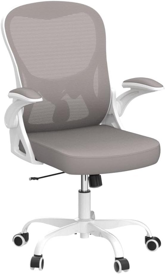 Office Chair Desk Chair, Ergonomic Mesh Computer Chair Home Office Desk Chairs, Swivel Task Chair Mid Back Breathable Rolling Chair with Adjustable Lumbar Support Flip Up Armrest (Gray)