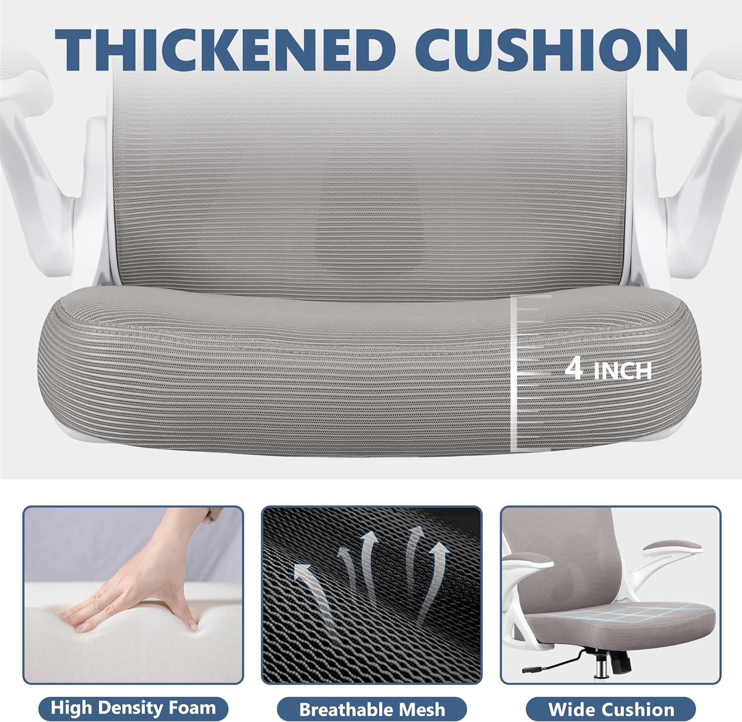 𝗖𝗼𝗺𝗳𝗼𝗿𝘁𝗮𝗯𝗹𝗲 𝗢𝗳𝗳𝗶𝗰𝗲 𝗖𝗵𝗮𝗶𝗿: Filled with high-density sponge, the 4-inch-thick streamlined cushion is soft and elastic enough to reduce the discomfort of sitting for a long time. Breathable mesh structure greatly improves air permeability and avoids sultry feeling, especially in hot season. Adjustable padded armrests provide extra comfort and support for your arms. Comfortable mesh office chair, for long-term use.