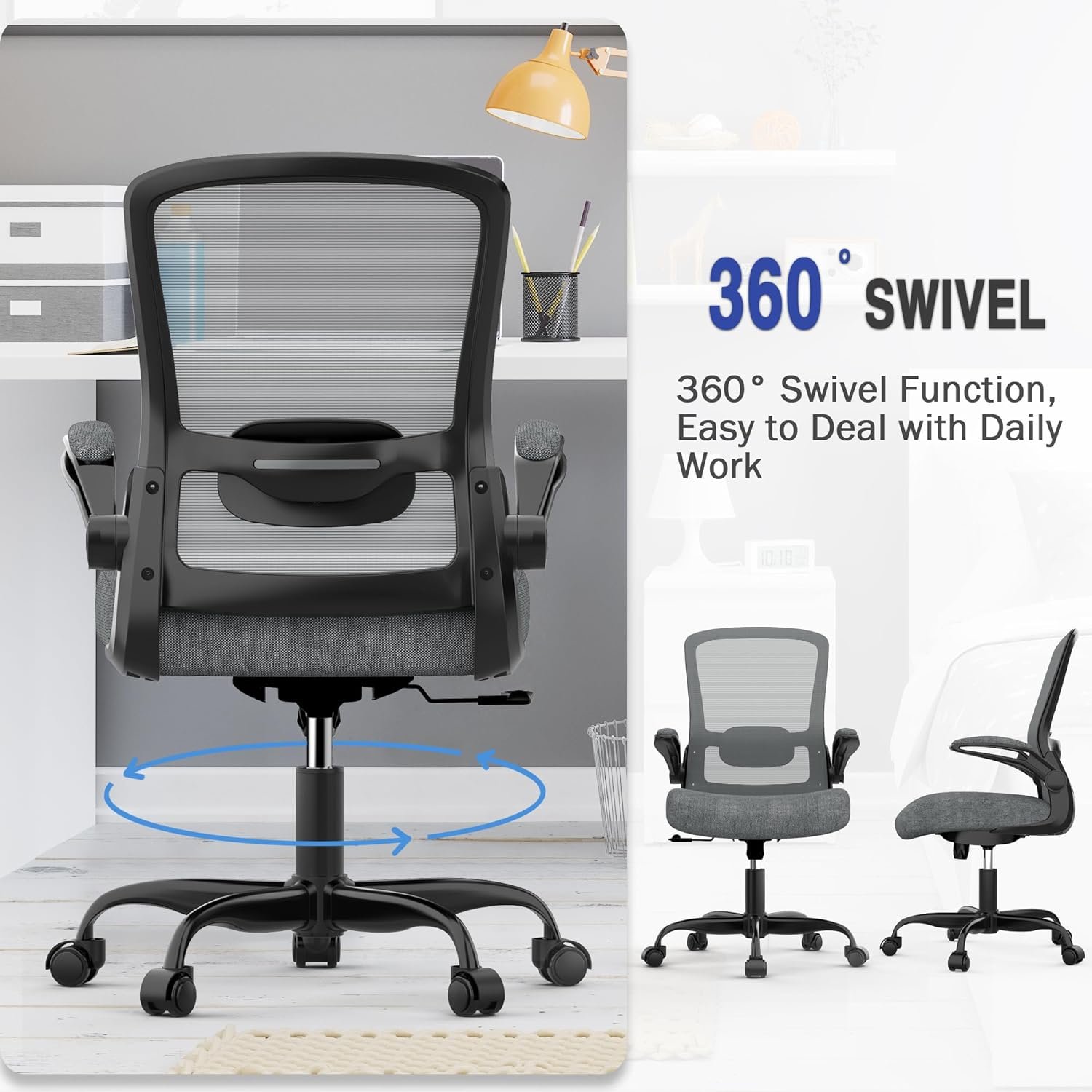 【SPACE SAVING】The simple style of the mesh chair adapts ideally to any office furniture, especially in living rooms, bedroom, kitchen, study and office, and can be used in a variety of ways, you can flip the arms up and put it under the desk for saving space