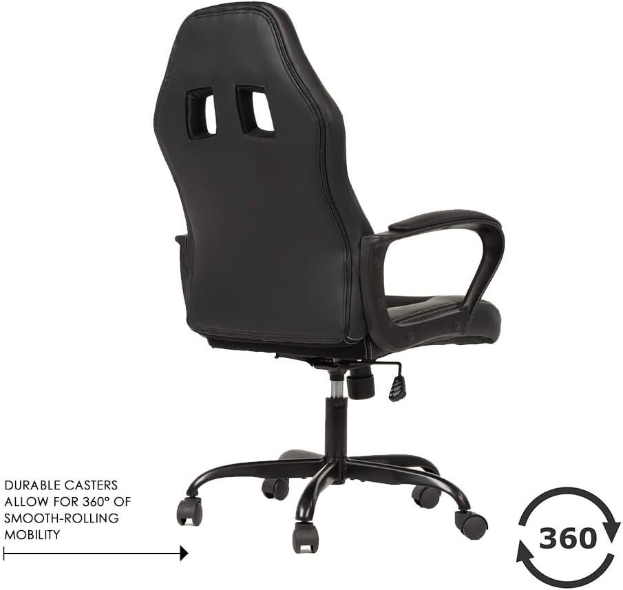 Office Chair PC Gaming Chair Cheap Desk Chair Ergonomic PU Leather Executive Computer Chair Lumbar Support for Women, Men (Black)