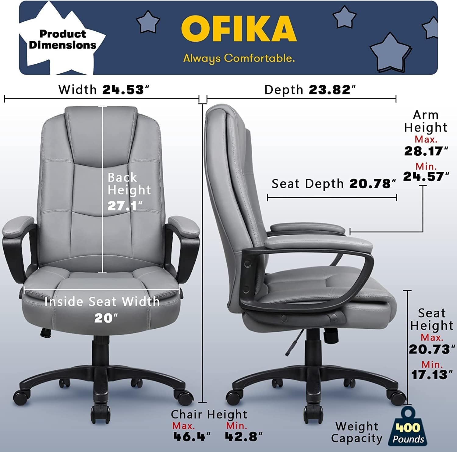 ✨【Safety Leather Executive Chair】- Leather office chair cradles your body with soft leather and a double padded foam seat cushion, 400 pound weight capacity, padded armrest for an upscale look and max comfort you can sink into it,this executive chair will improve your work efficiency, work and rest go together.