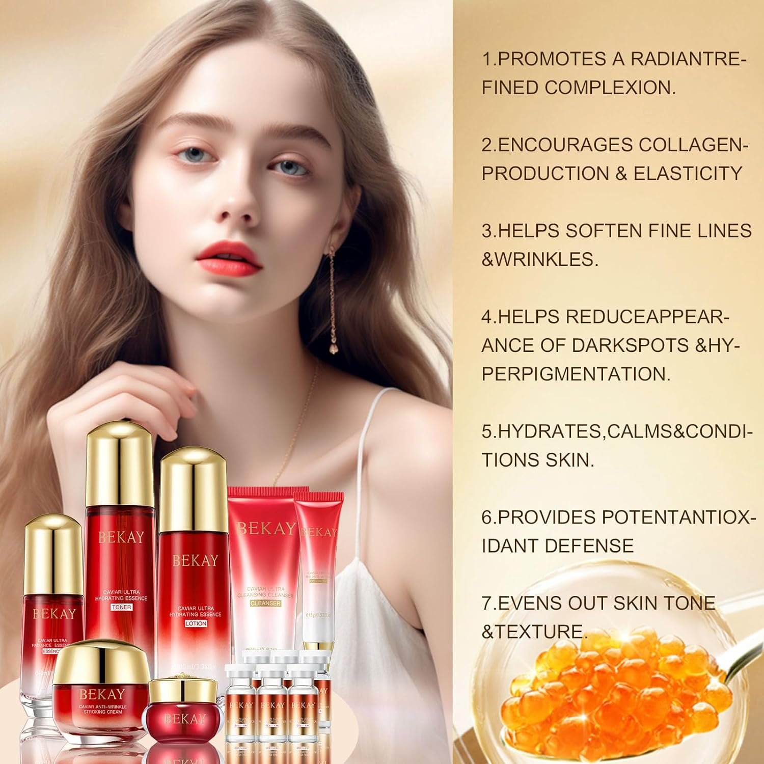 O’KADY Skincare Set Anti Aging Skin Daily Care Routine Kit with Vitamin C and Peptides Facial Cleanser Eye Mask Toner Serum Eye Cream Lotion Cream Lady Cream Gifts Sets for Valentine’s Day(10 pcs)