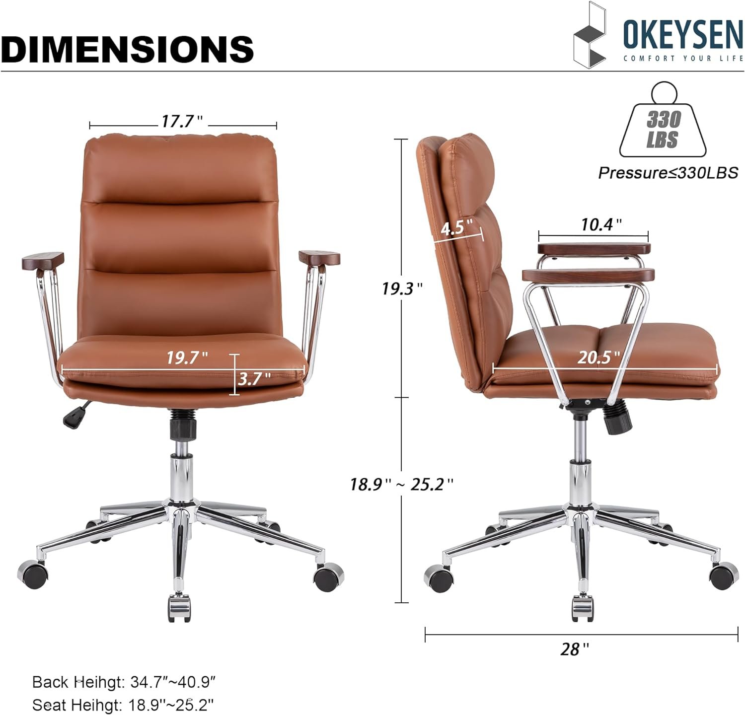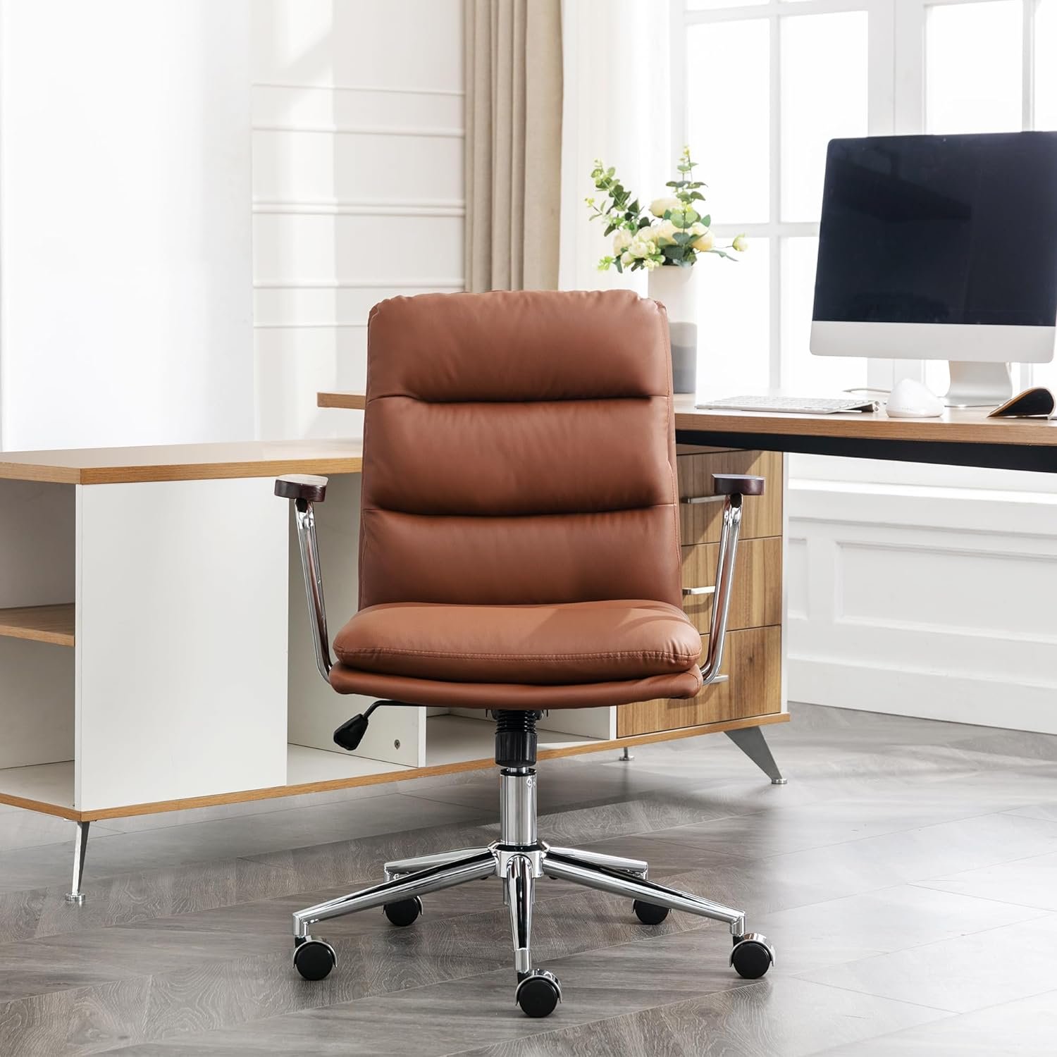 【Premium Wooden Armrests】Wooden armrests bring a mid-century modern style for this leather office chair. Detachable armrests make this chair suitable for different occasions, and can be easily placed under most desks to save space.