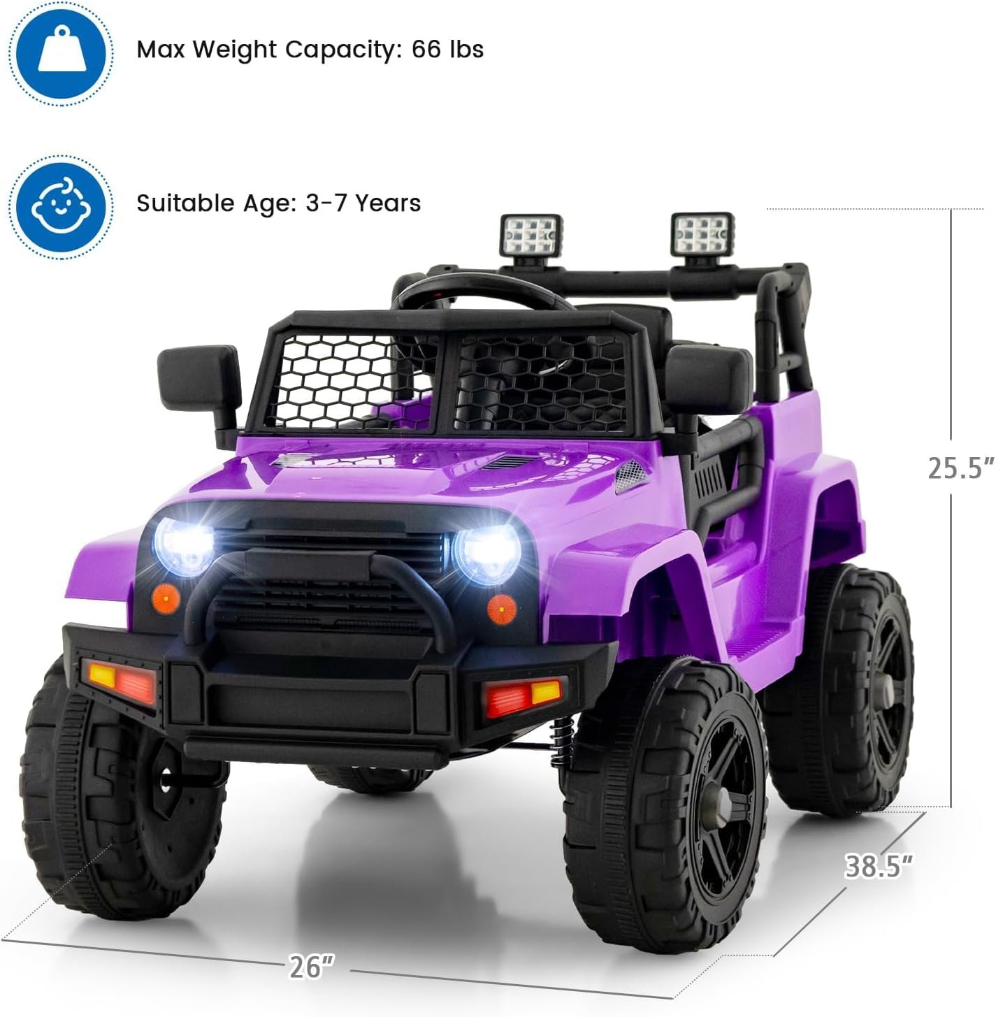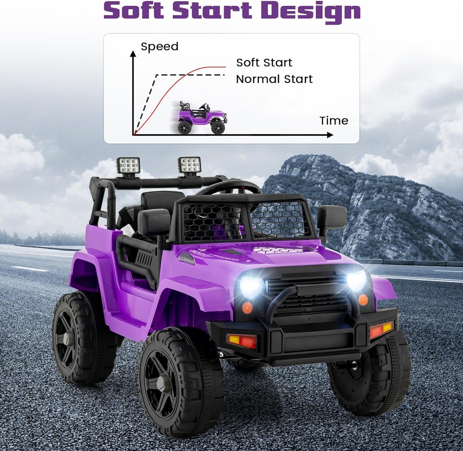 🚜12V Electric Ride On Truck: Featuring dual motors, double lockable doors, bright LED headlights and the realistic dashboard, this 12V ride-on car can offer kids real driving experience with 2.5-4.5 km/h speed.