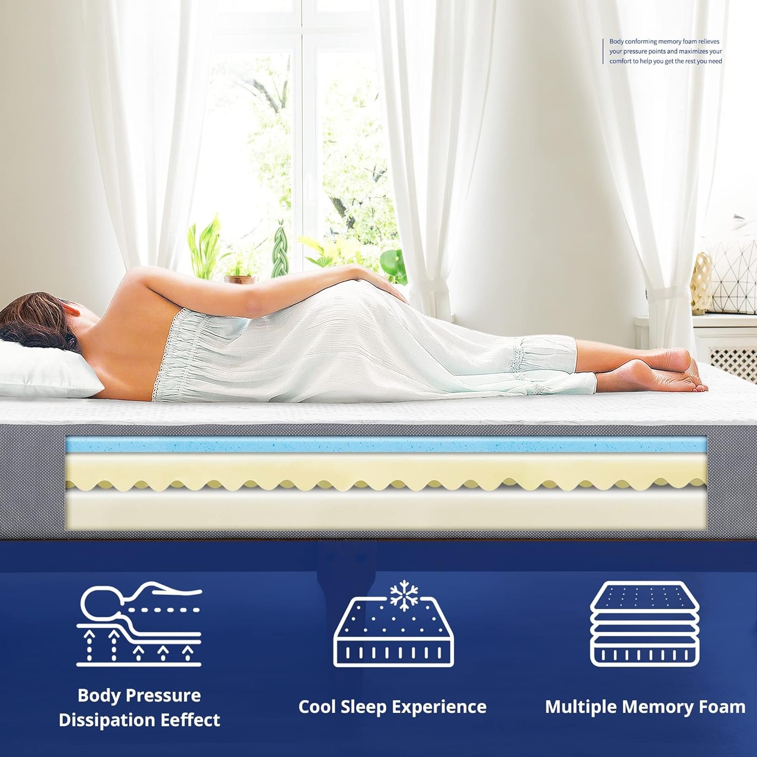 Sleep easy with the Olee Sleep’s Multi-Layered and Ventilated Gel Infused Memory foam Mattress. It features multi layers to ensure exquisite comfort every night. Dura I-gel foam, Dura HD convoluted foam and Dura HD foam are surrounded by polyester jacquard to stabilize, reduce pressure points and provide long-lasting support. The gel memory foam alleviates weight and helps keep you cool. Pair it with the frame and bedding of your choice (available separately).