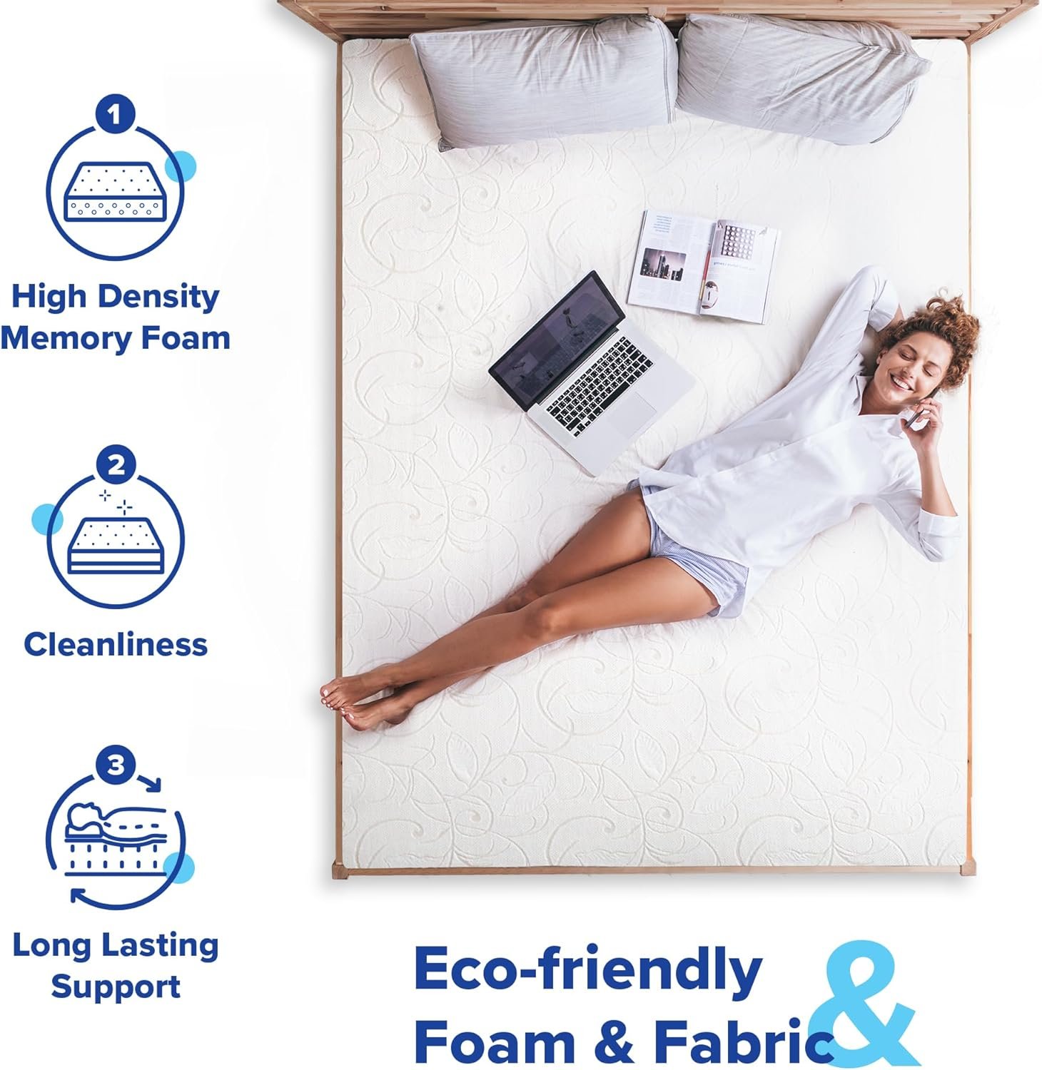 – High Density (HD) Foam: High density foam & memory foam synergy provides enhanced support and top comfort experience.