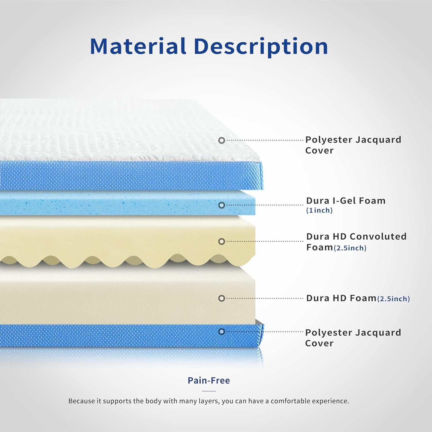 Multi-layers of memory foam design that makes for an ultra supportive and durable plush comfort