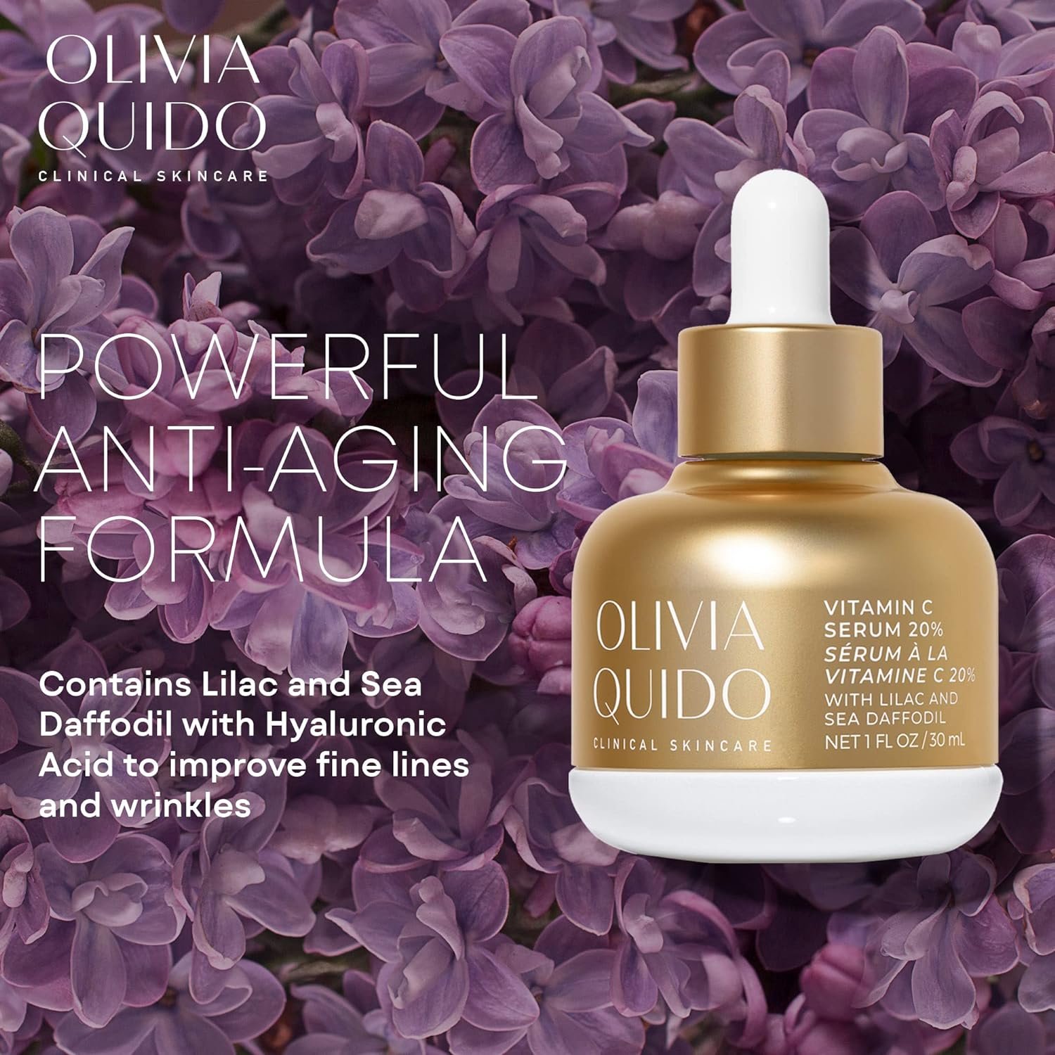 OLIVIA QUIDO Skincare Vitamin C Serum 20% with Lilac & Sea Daffodil 3.6oz | Hydrating, Skin-Brightening, & Anti-Aging | Vitamin C & Hyaluronic Acid Serum for The Face with Natural Botanicals