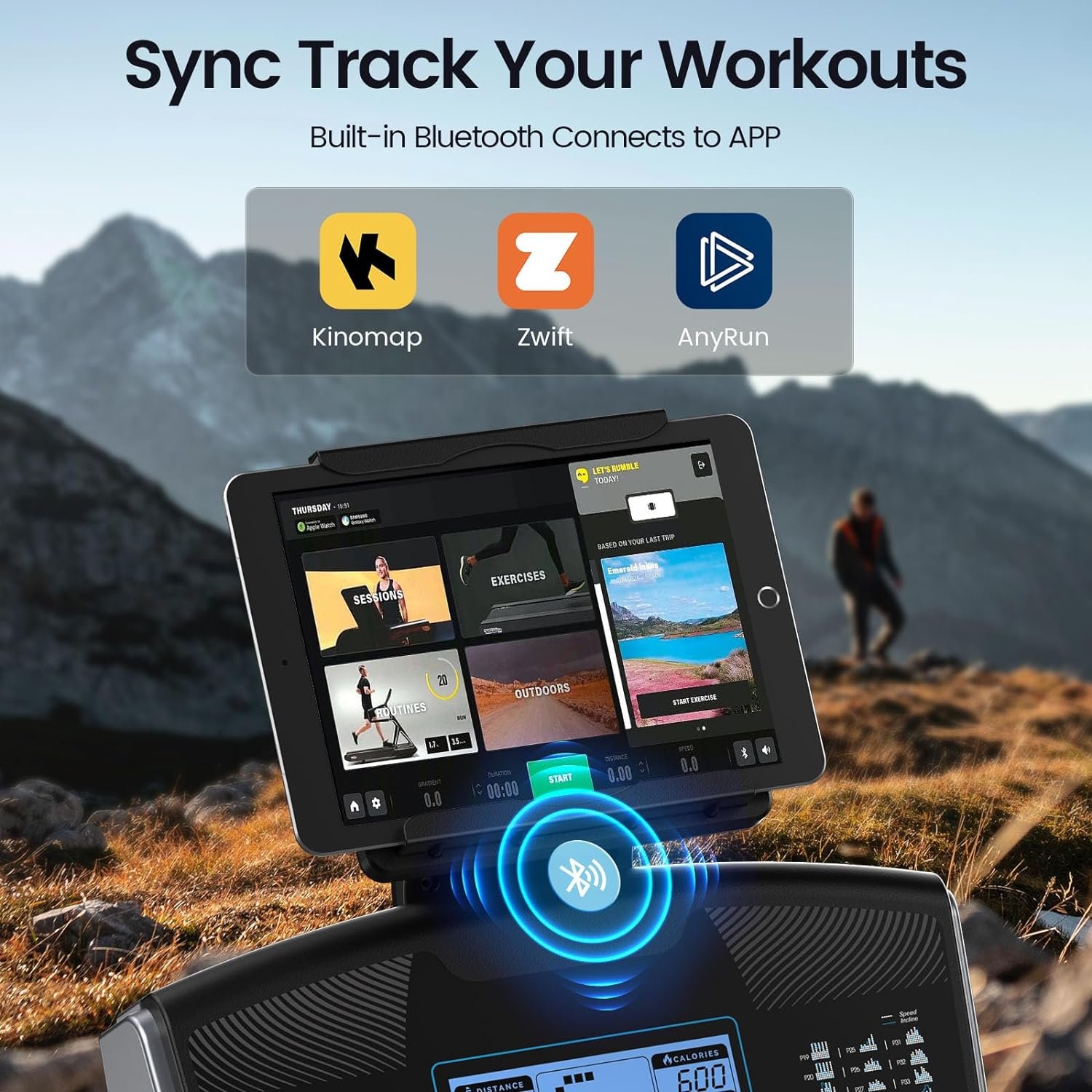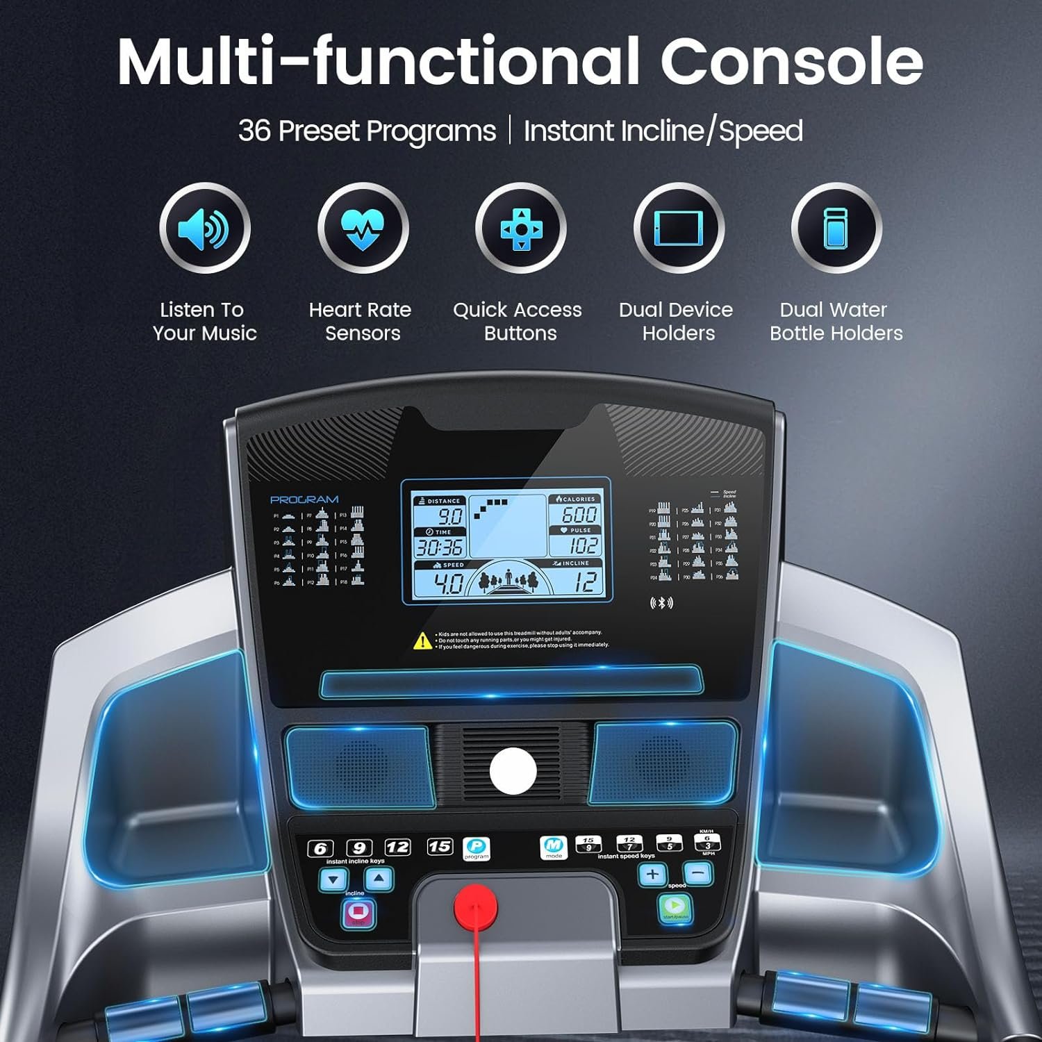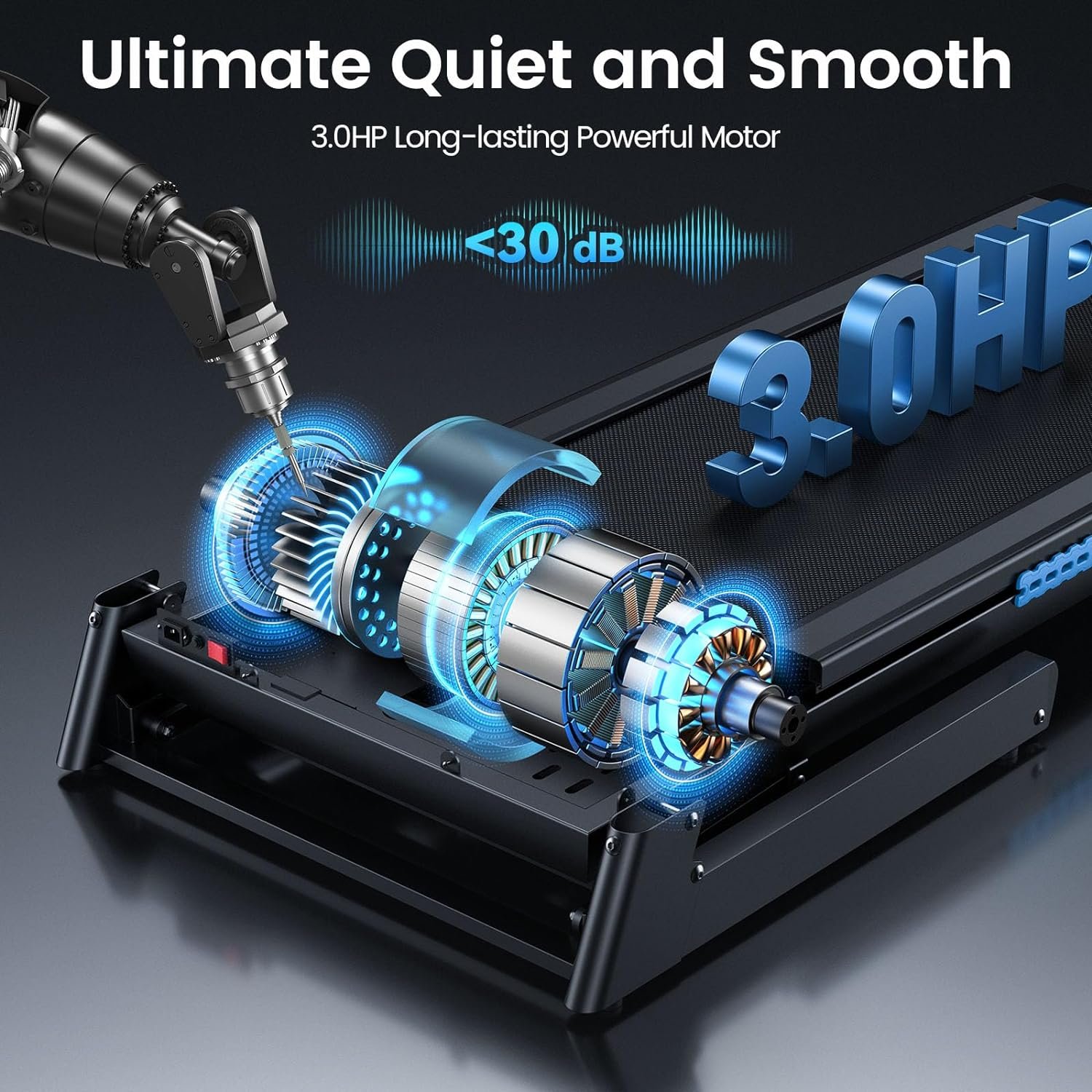 【3.0HP Powerful Motor】built in a commercial grade 3.0 continuous horsepower motor, which provides speeds up to 11.2 MPH (18 KM/H) and emits at lower than 45 dB of noise, ensuring your workouts won’t disturb your downstairs or neighbors.
