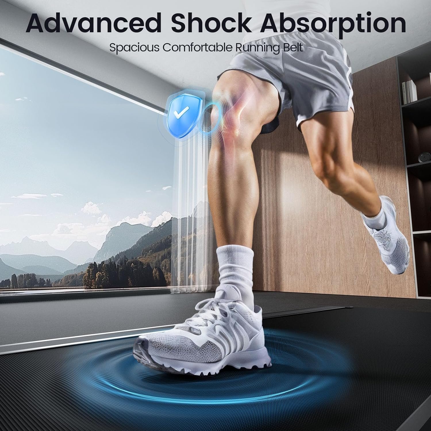 【20in Wide Belt】Provides 8 shock absorbers and 6 silicone shock absorption than the ordinary product, premium comfort and safety thanks to 20″ x55” large-area running belt and multilayer cushioning, non-slip feature, reduce joint impact and provide cushioning for knee, muscle and joints.
