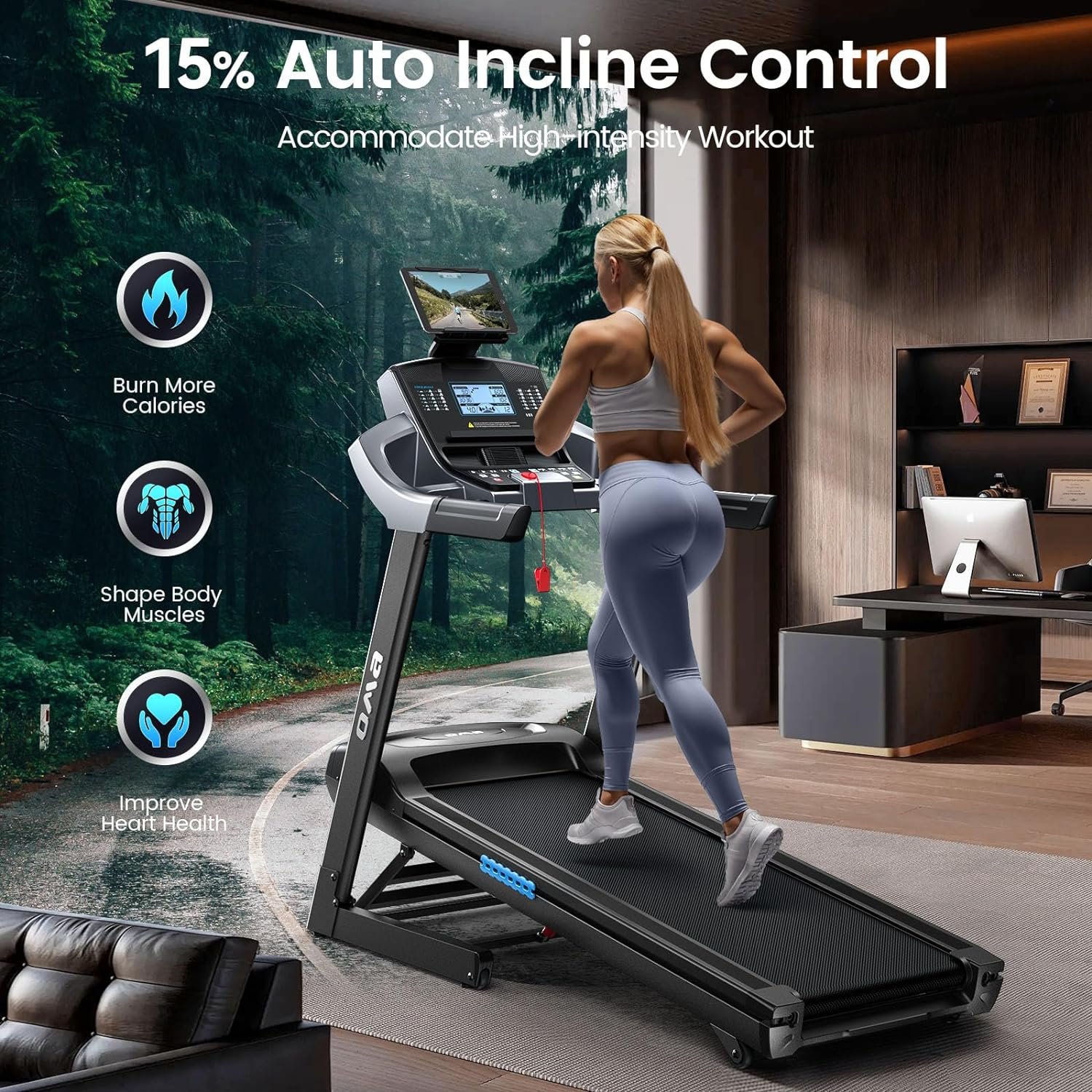【Auto 15% Incline】The OMA treadmill will automatically adjust from a 0% decline to a 15% incline simply by quick buttons or preset workouts. Fully elevate your home exercise and burn calories faster.