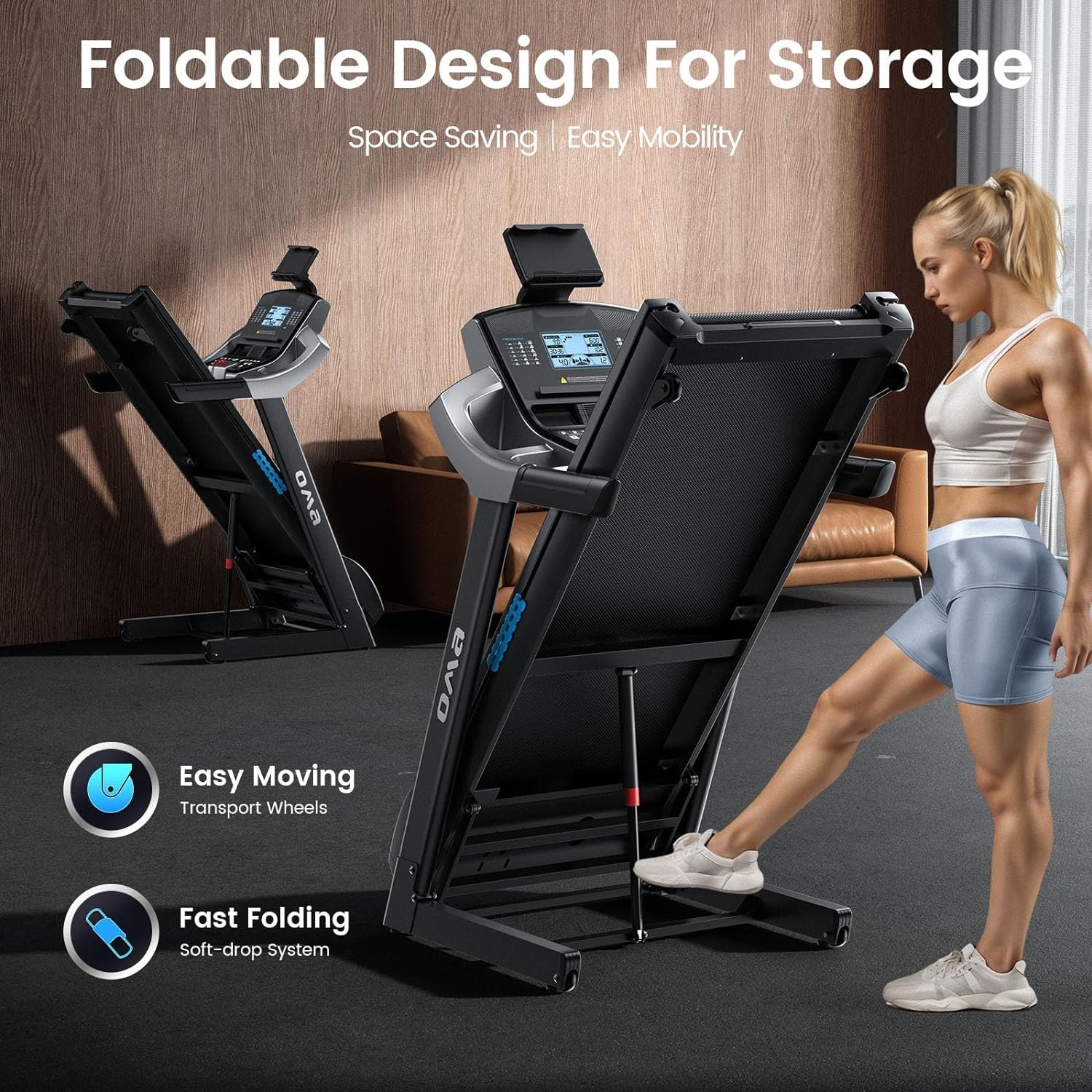 【Folding Treadmill】The OMA treadmill is easy to assemble, fold and move. Assembly only requires 2 people and 20 minutes. The hydraulic bar under the treadmill folds automatically when you lift it slightly. The wheels on the underside of the treadmill are very smooth and easy to move.
