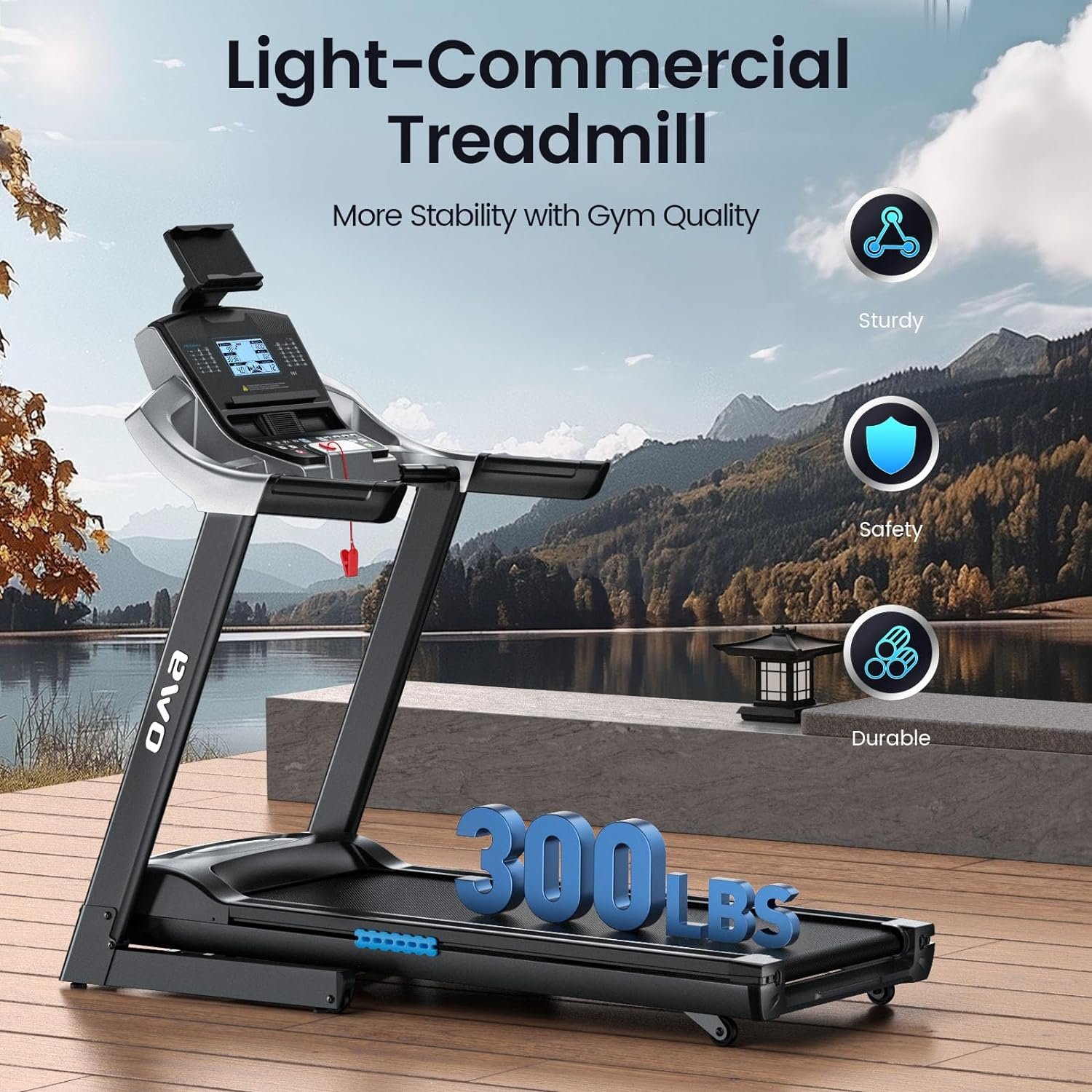 【300LBS Weight Capacity】Made of extra-thicken steel, 6 shock-absorbing cushions built-in, and a heavy-duty gauge frame to ensure a weight capacity of up to 300LBS—a treadmill for all family members.