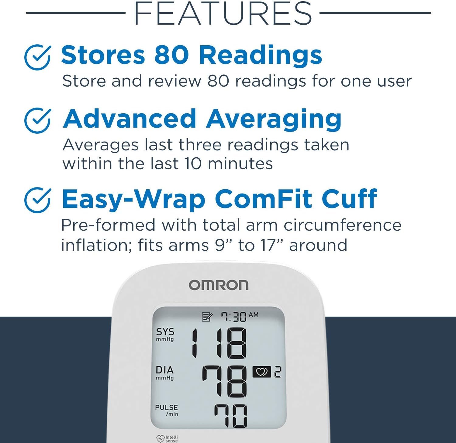 Easy-Wrap ComFit cuff on OMRON monitor inflates 360° around the arm from 9” to 17” circumference to help reduce errors and ensure accuracy.