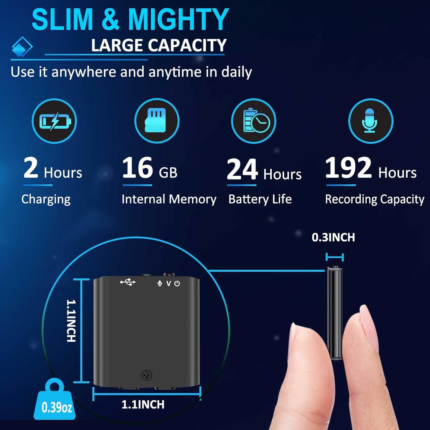 ✅【Portable & Practical Recorder】 – A perfect compact size that feels nice on the touch. Light as a feather (only 0.35oz). This portable recorder can be taken everywhere you go, to work, school or travel. This practical voice recorder with many function is usable for various scenes without take much space.