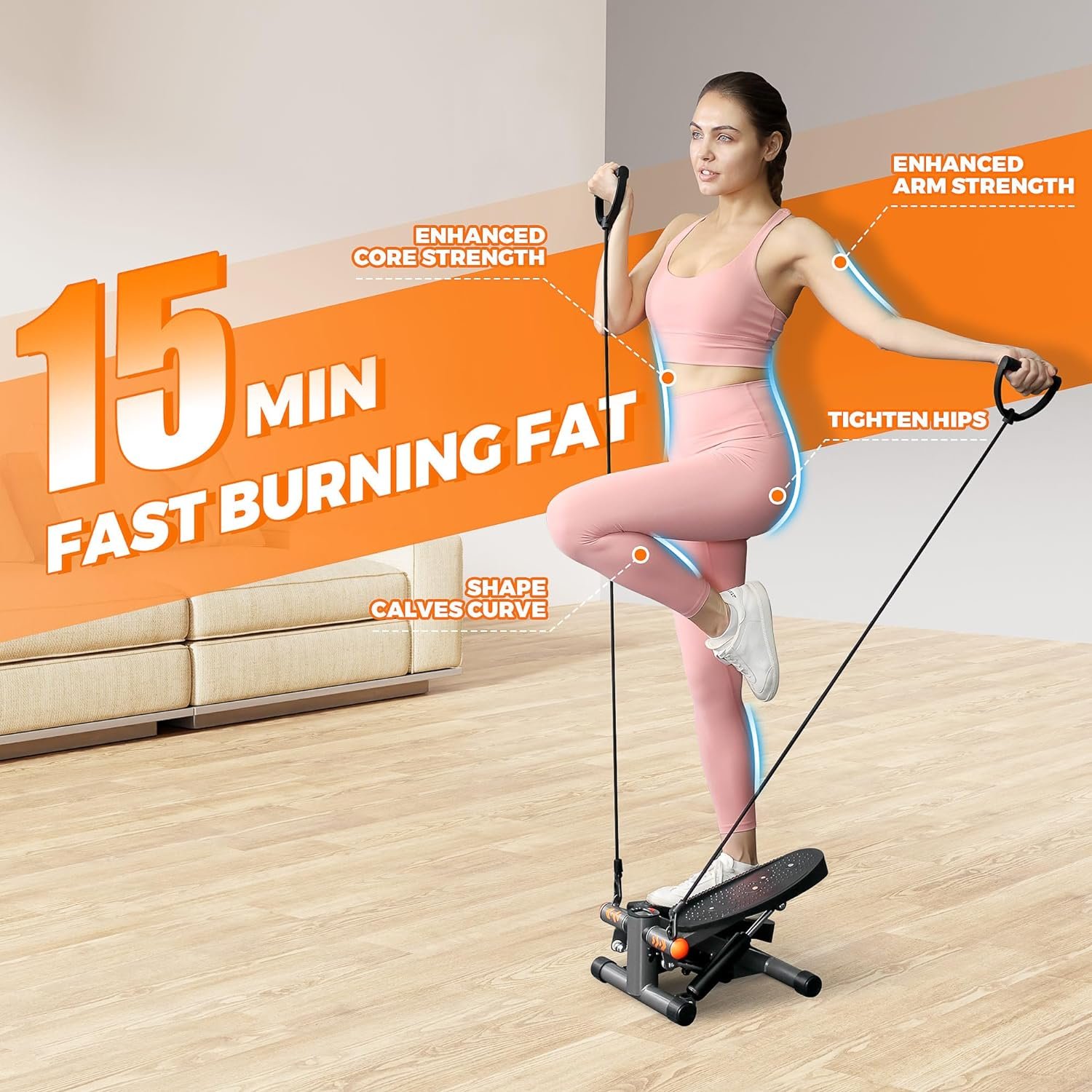 Compared to other steppers on the market, the ONETWOFIT Fitness mini stepper features a twisting motion and comes equipped with resistance bands. This allows you to engage your core by twisting your waist while exercising, expanding the range of motion for your entire body. It is perfect for weight loss, body shaping, and daily workouts. The resistance bands can be easily detached, allowing you to customize your exercise routine.