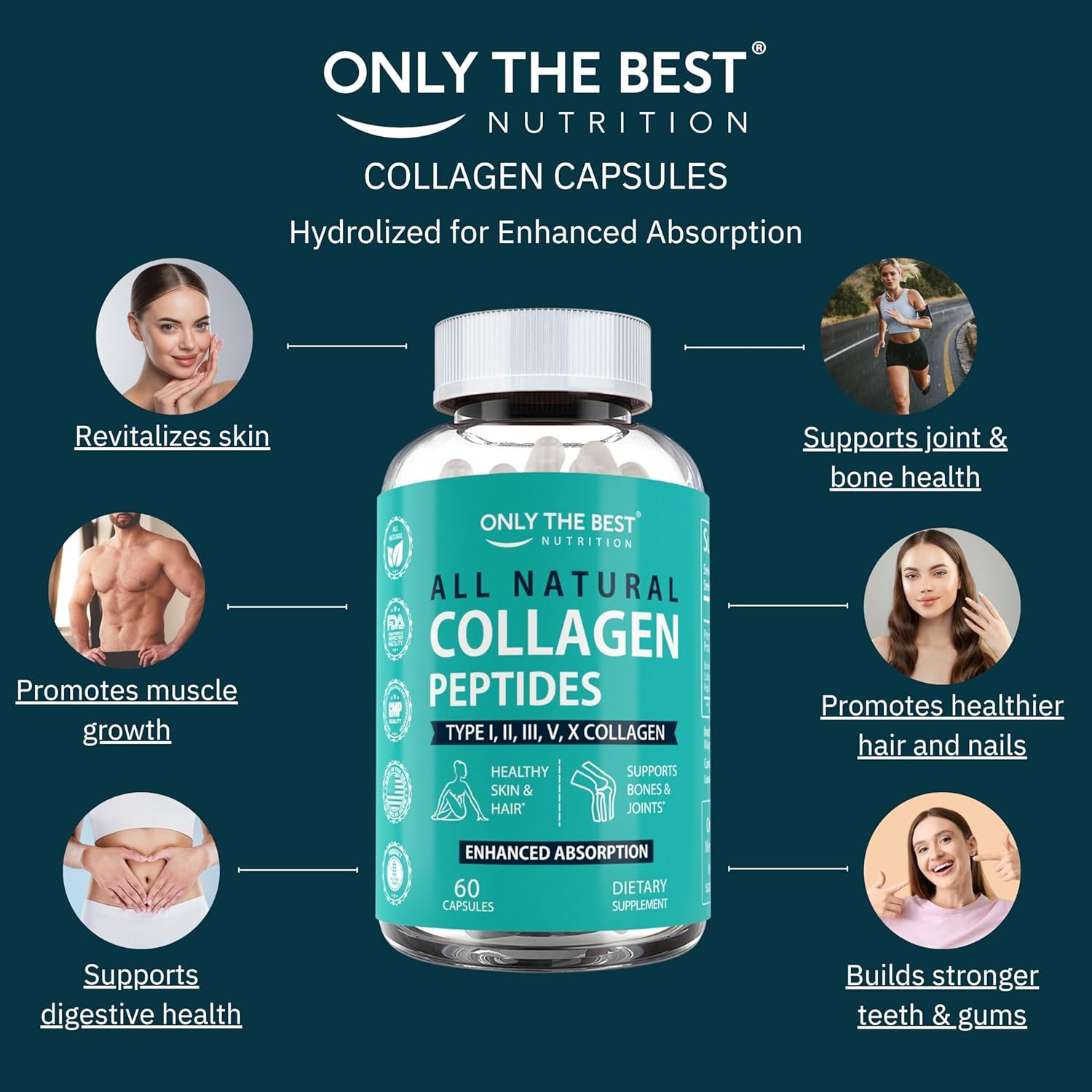 Uncompromised Quality: We believe in purity. Our collagen pills are crafted from all-natural vitamins, minerals, and herbal extracts, free from harmful additives, gluten, wheat, yeast, artificial ingredients, and preservatives. Trust in a safe, potent way to support your health, strength, and beauty.