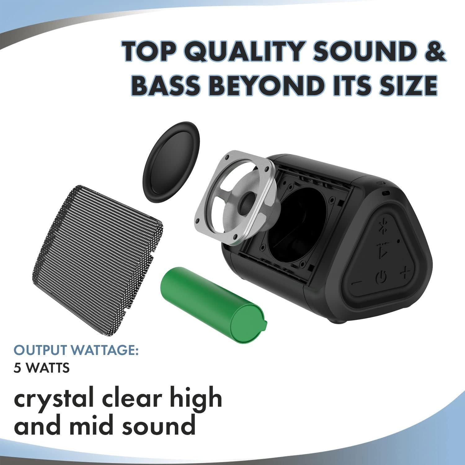 PORTABLE BLUETOOTH SPEAKER – Designed and Engineered by Cambridge SoundWorks in the USA, the OontZ Solo with its unique triangular and compact design, offers high-quality crystal-clear stereo sound for a truly immersive listening experience. This small bluetooth speaker is versatile and can be placed either flat or standing up, making it perfect for on-the-go use, whether you’re enjoying a picnic at the park or the beach, or even using it in your car for better sound on long road trips.