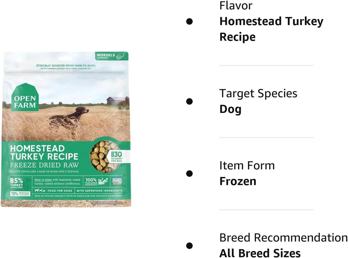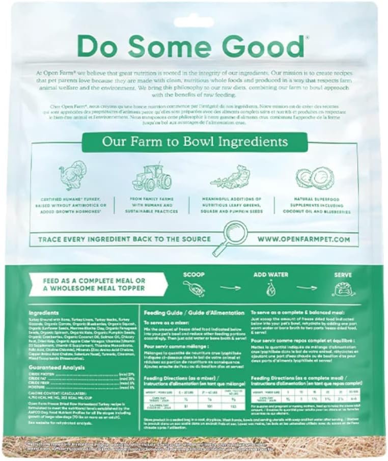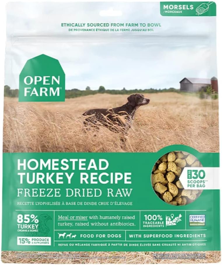Open Farm Freeze Dried Raw Dog Food, Humanely Raised Meat Recipe with Non-GMO Superfoods and No Artificial Flavors or Preservatives (22 Ounce (Pack of 1), Homestead Turkey Recipe)