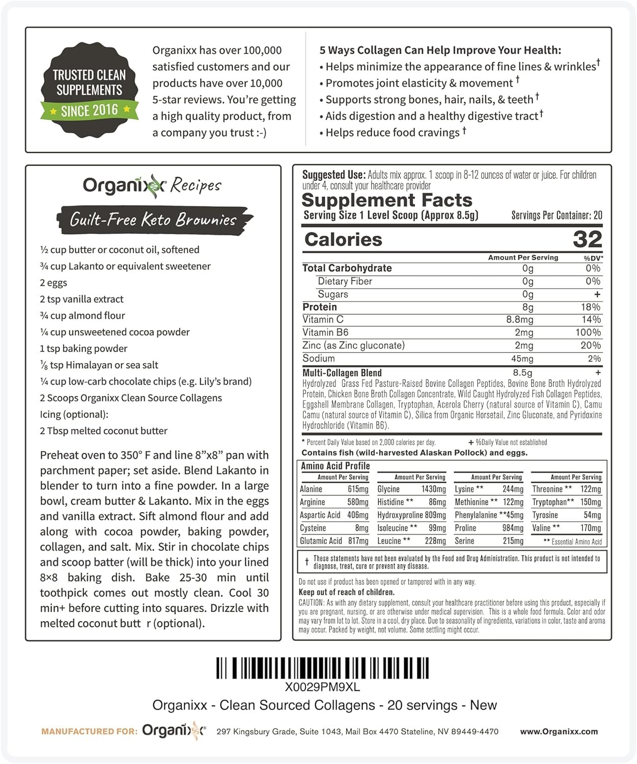 WORKS FOR A WIDE RANGE OF DIETS: We formulated our Clean Sourced Collagens to complement keto, paleo, low carb, low fat, low calorie, and gluten-free diets. Each serving contains zero sugar and carbs, 8g protein, 1g fat, and only 32 calories. We sourced our collagen supplements’ ingredients from grass-fed, pasture-raised bovines, wild-caught Alaskan pollock, and eggshell membrane.