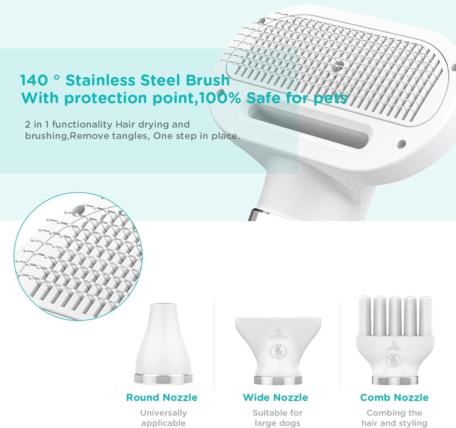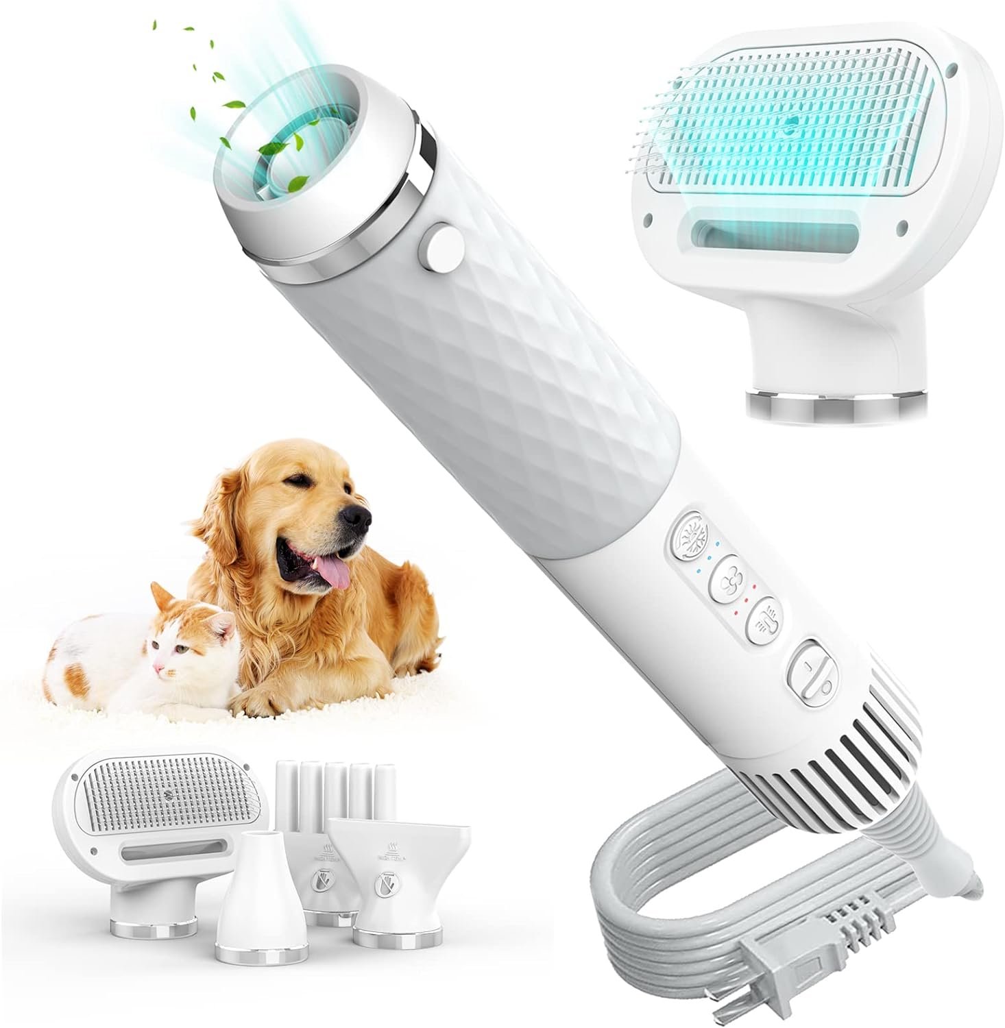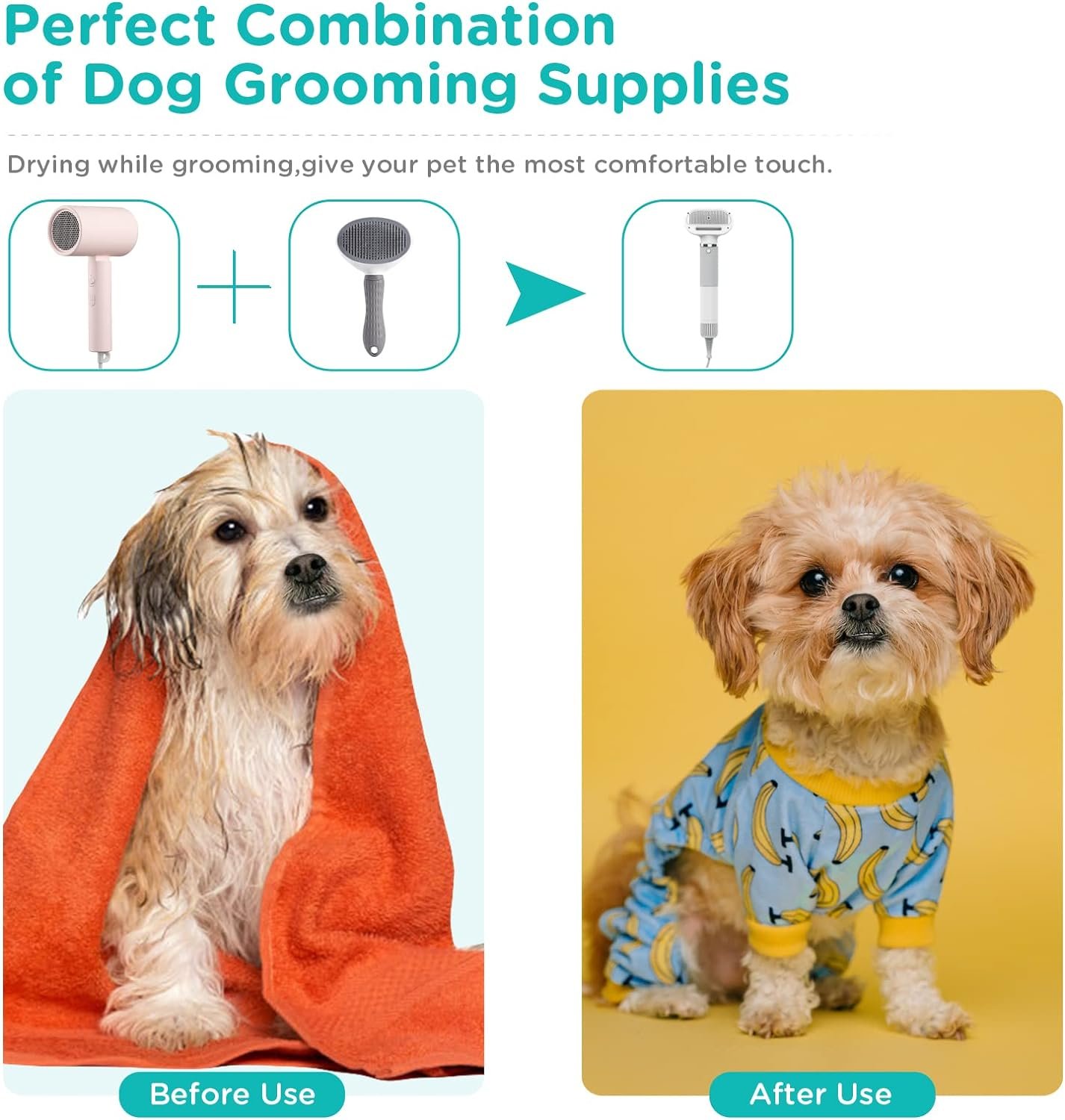 Oswviler Dog Dryer,Portable Less Noise 5 in 1 Dog Hair Dryer with Smart Temperature Control Dog Blow Dryer Brush For Small,Medium Dogs,Cats