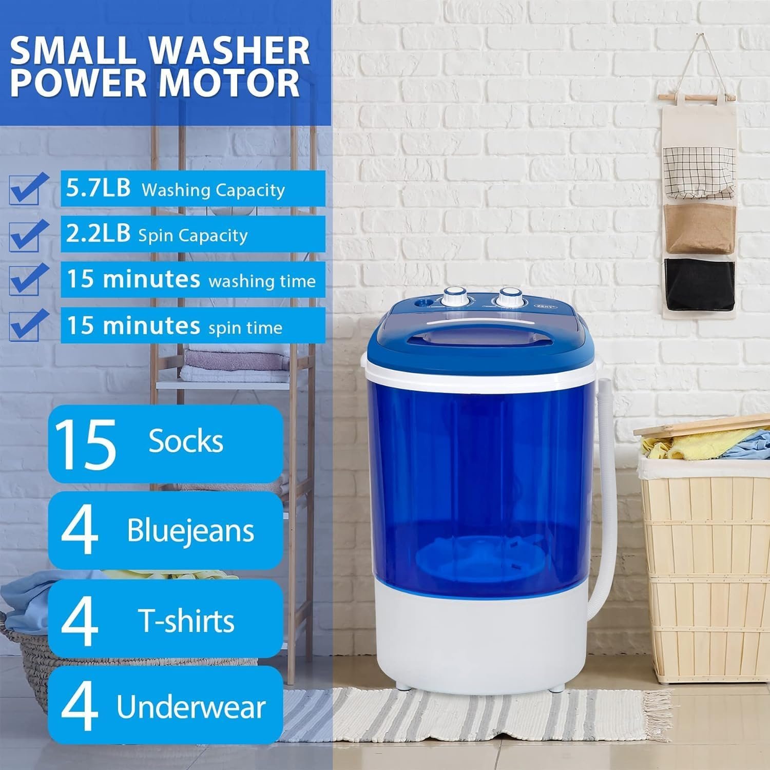 – Ideal for compact laundry such as dorms, college rooms, apartments, RV’s, camping, traveling and more