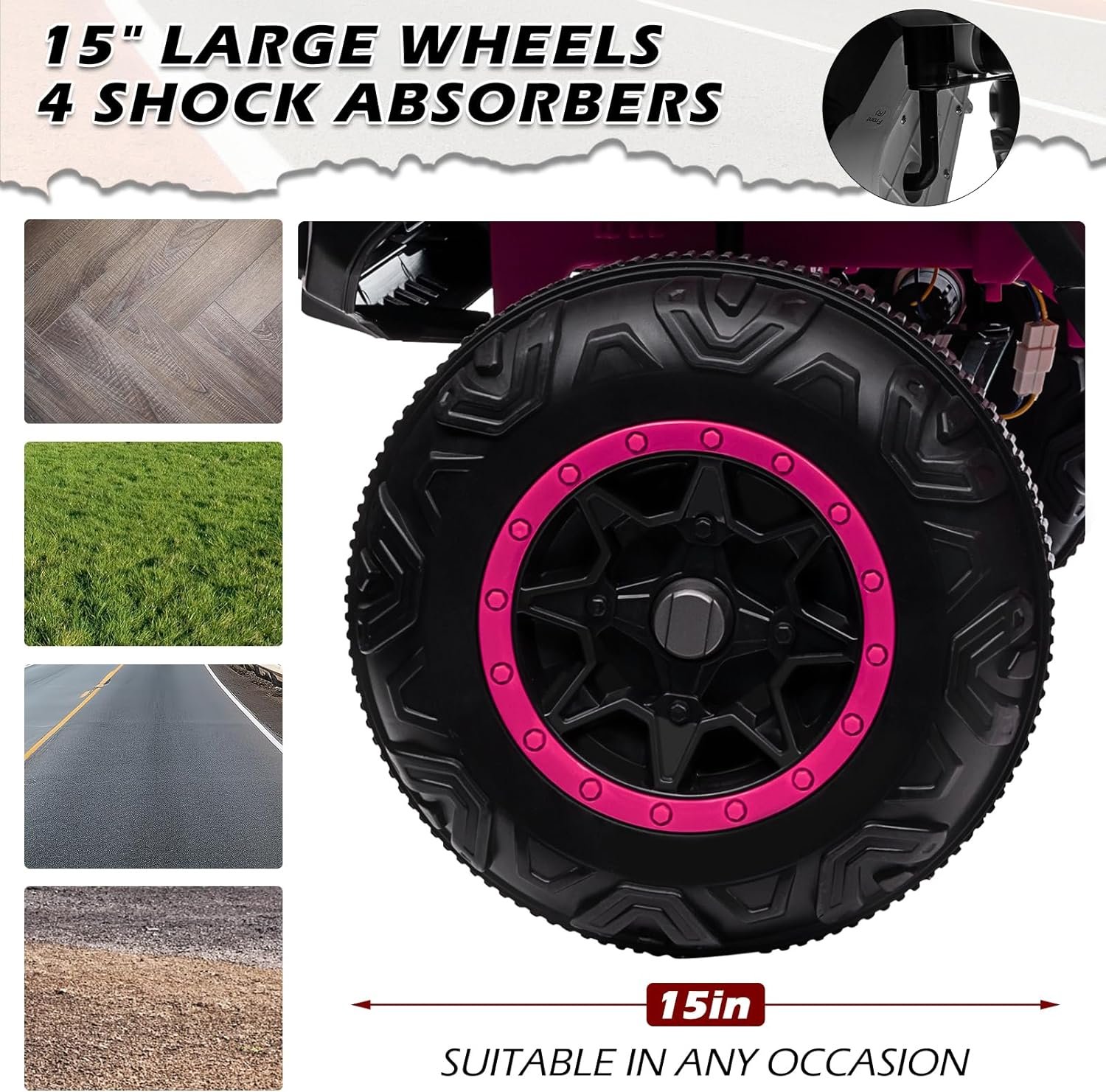 【4WD/2WD Switchable Motor】The 24V kids electric car vehicle is equipped with four 100W powerful motors, providing strong and stable power. The 4WD mode is ideal for overcoming obstacles, whereas the 2WD mode is efficient for driving on flat surfaces for extended periods.