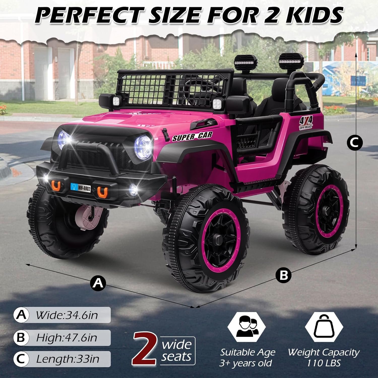 【20 Inch Two-seater Design】This 24volt ride on toy have 20 inch wide seater and the max weight capacity is 130LBS, a wide seat that can accommodate two children aged 3-4 years old or a single child up to 8 years old. This makes it a good option for families with more than one child.