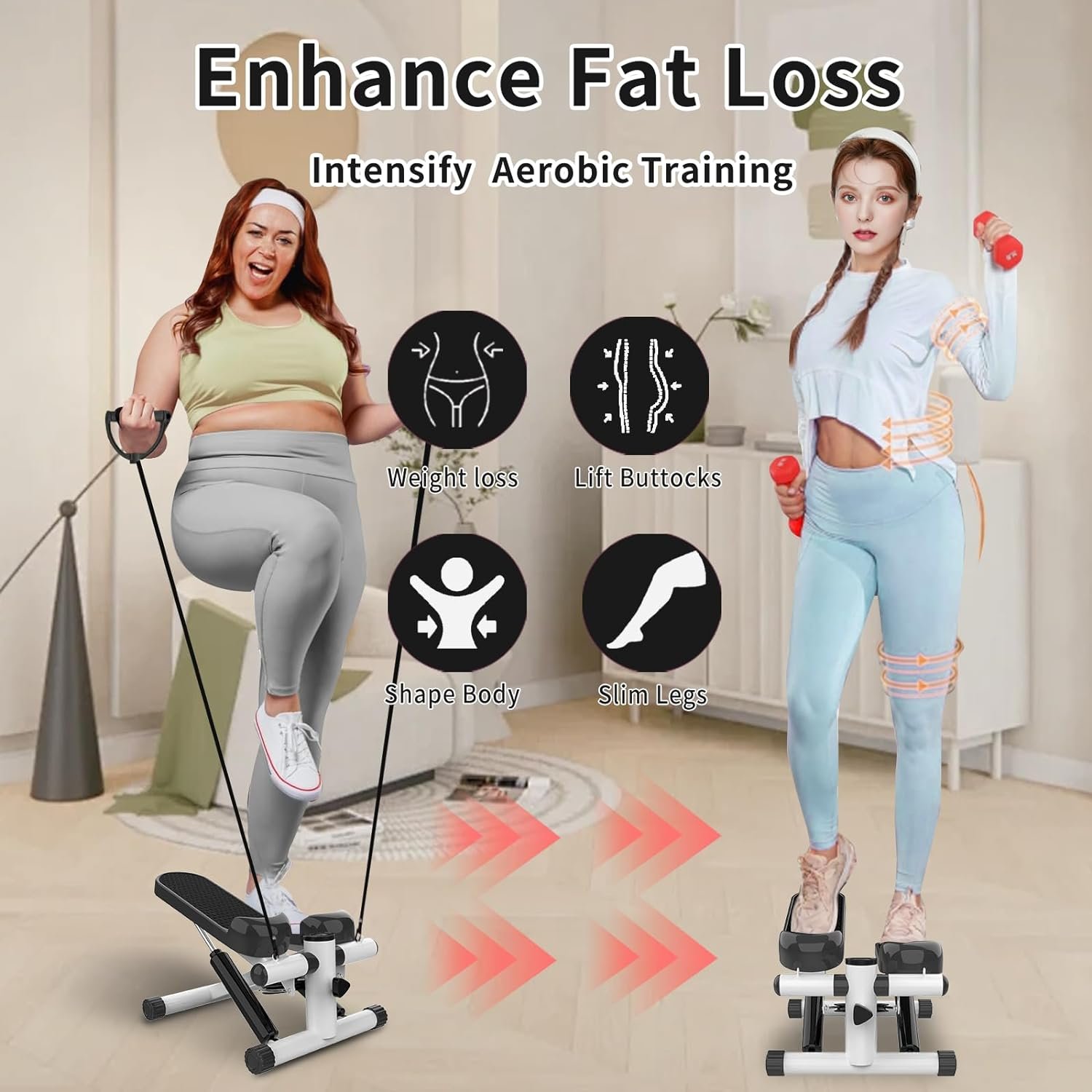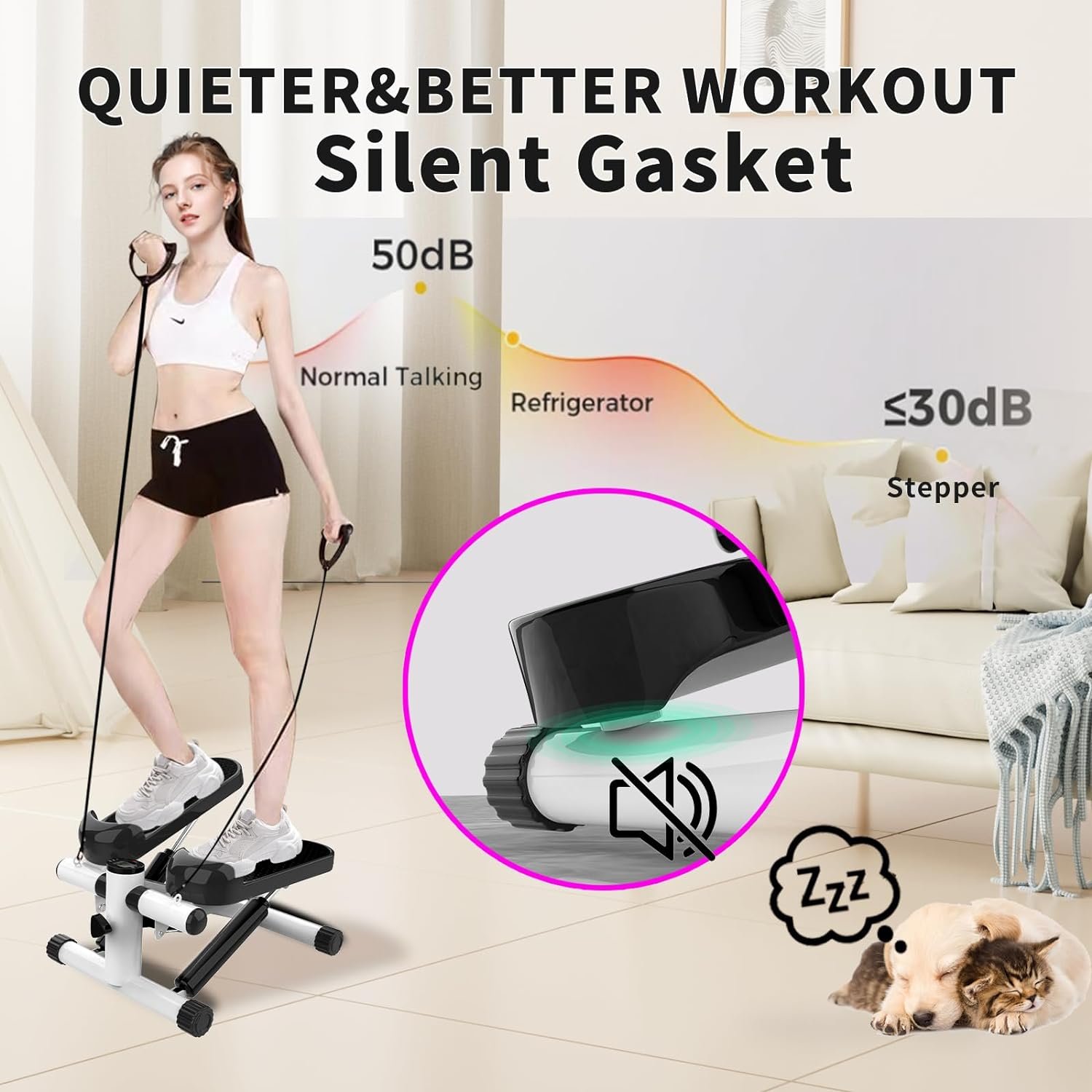 Resistance Bands Included: The addition of resistance bands enhances your workout intensity, providing a full-body workout. You can tone your upper body while you strengthen your lower body with our mini stepper with resistance bands.