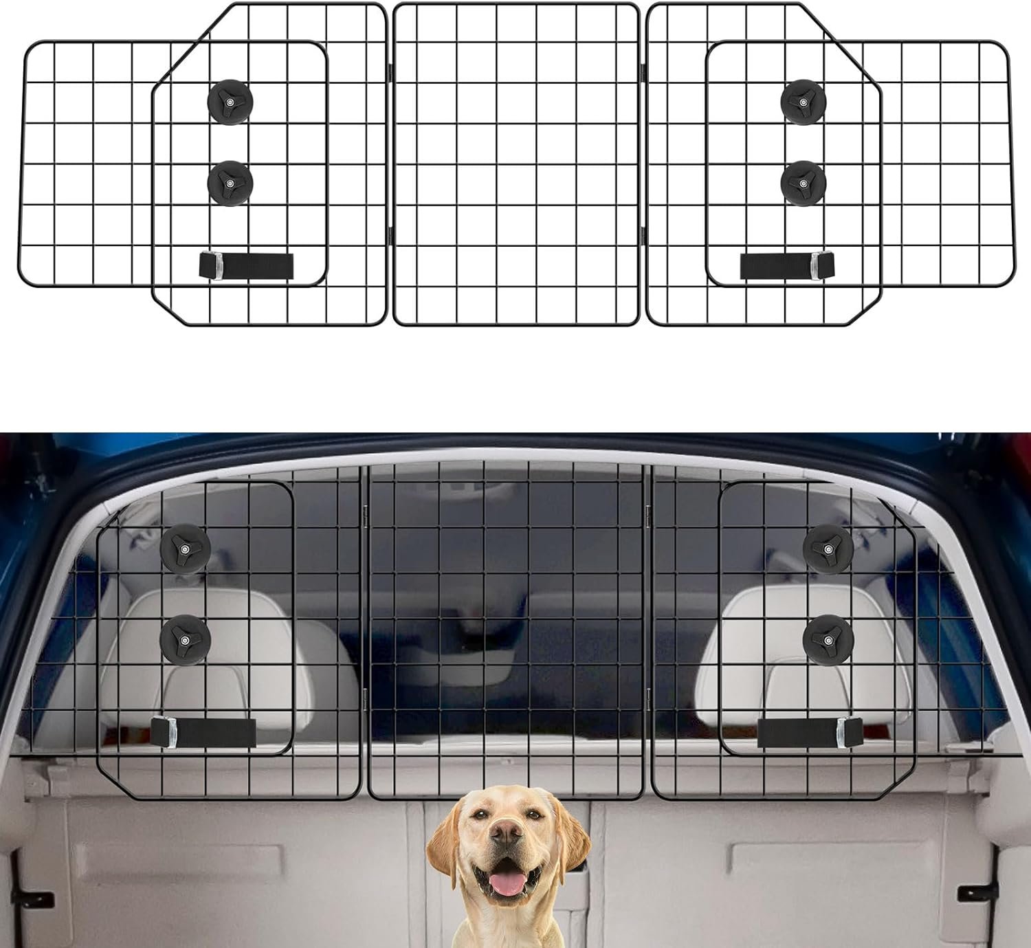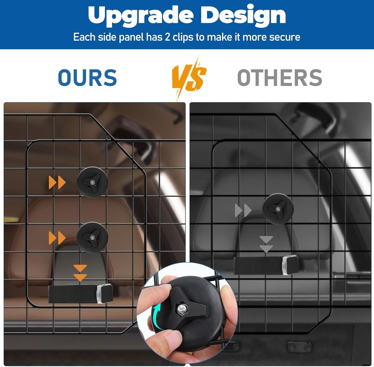 【Premium Heavy-Duty Thick Steel】 Compared to other flimsy dog car barrier, this dog barrier for SUV is made of upgraded thickened steel wire and rust-resistant material, which is sturdy and durable for years of use. The car dog barrier not only provides good support when your dog scratches or tears with its claws, but also the smooth steel surface won’t scratch your car’s interior or hurt your dog.