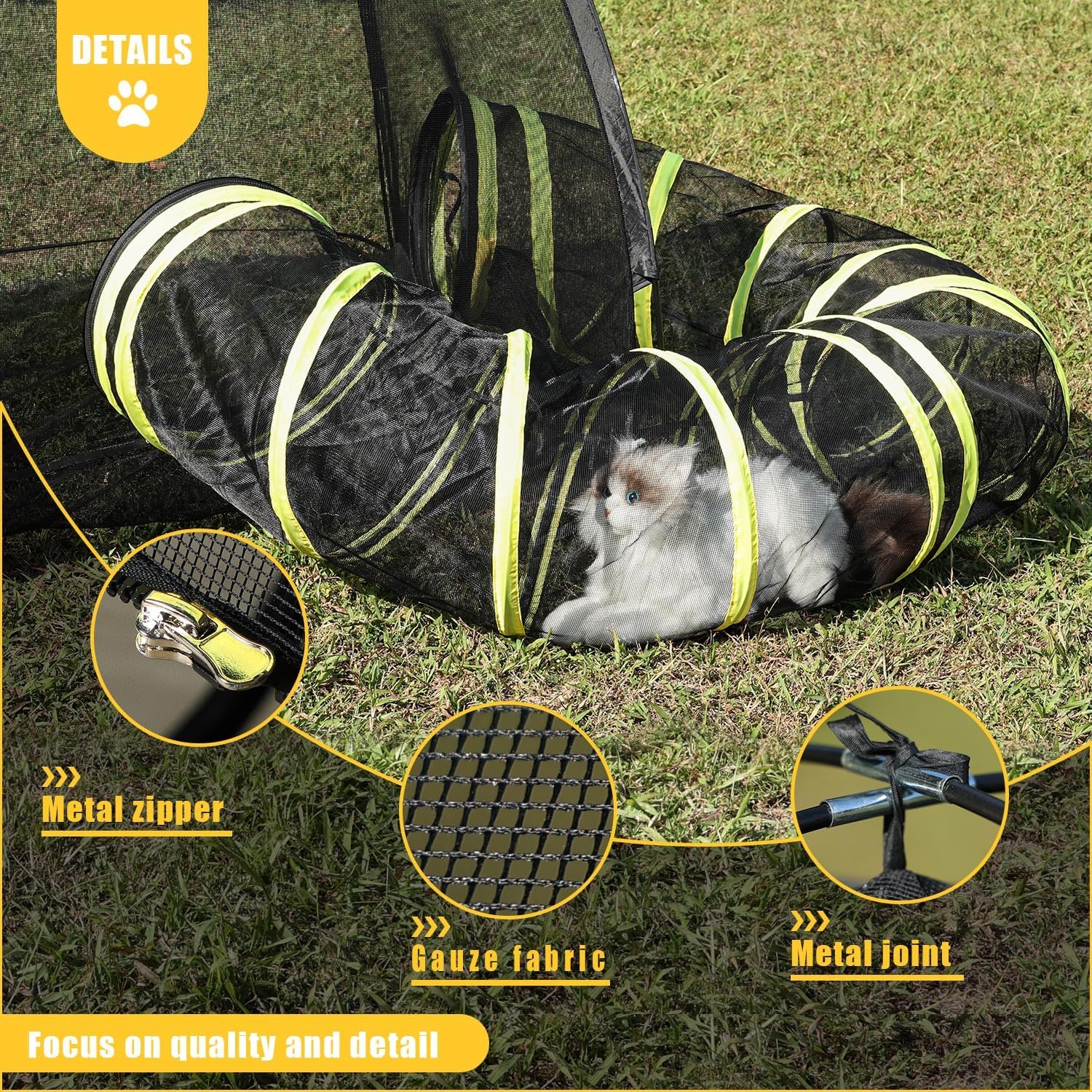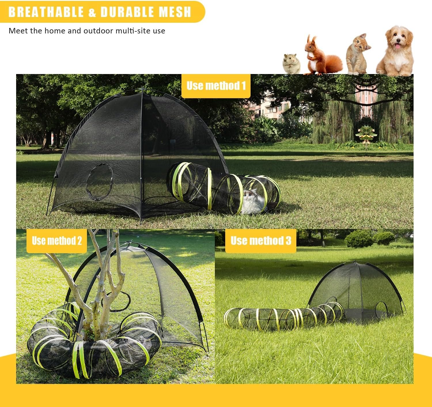 Cat Tents for Outside 🐾😺- Unleash the thrill of the great outdoors with our outdoor cat enclosures! Your indoor royalty deserves a safe and playful haven. The outdoor cat tent boasts not one, but two grand zipper entrances, and the outdoor cat tunnel? Oh, it’s the secret pathway to extra excitement, seamlessly connecting to the outdoor cat tunnel. Let the feline adventures begin!