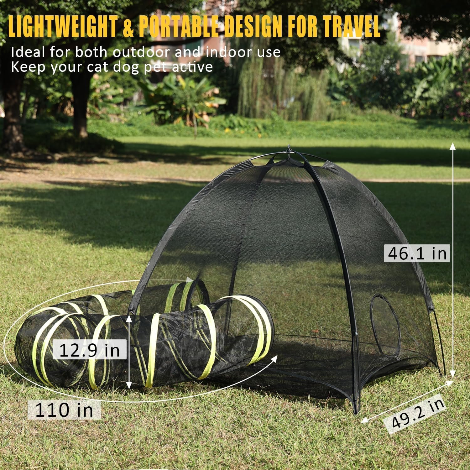 Deluxe and Roomy Pet Enclosures 🏰🐾 – Behold the grandeur of our deluxe outdoor cat enclosures for indoor cats! The cat tent, measuring a princely 49*49*46 inches, and the cat tunnel, a sprawling 12*110 inches, together bestow over 15 square feet of regal play territory. Fit for the most discerning feline, this lavish space accommodates multiple cats, rabbits, guinea pigs, ferrets, and other petite aristocrats. And fear not, there’s ample room for a array of toys, treats, and a litter box!