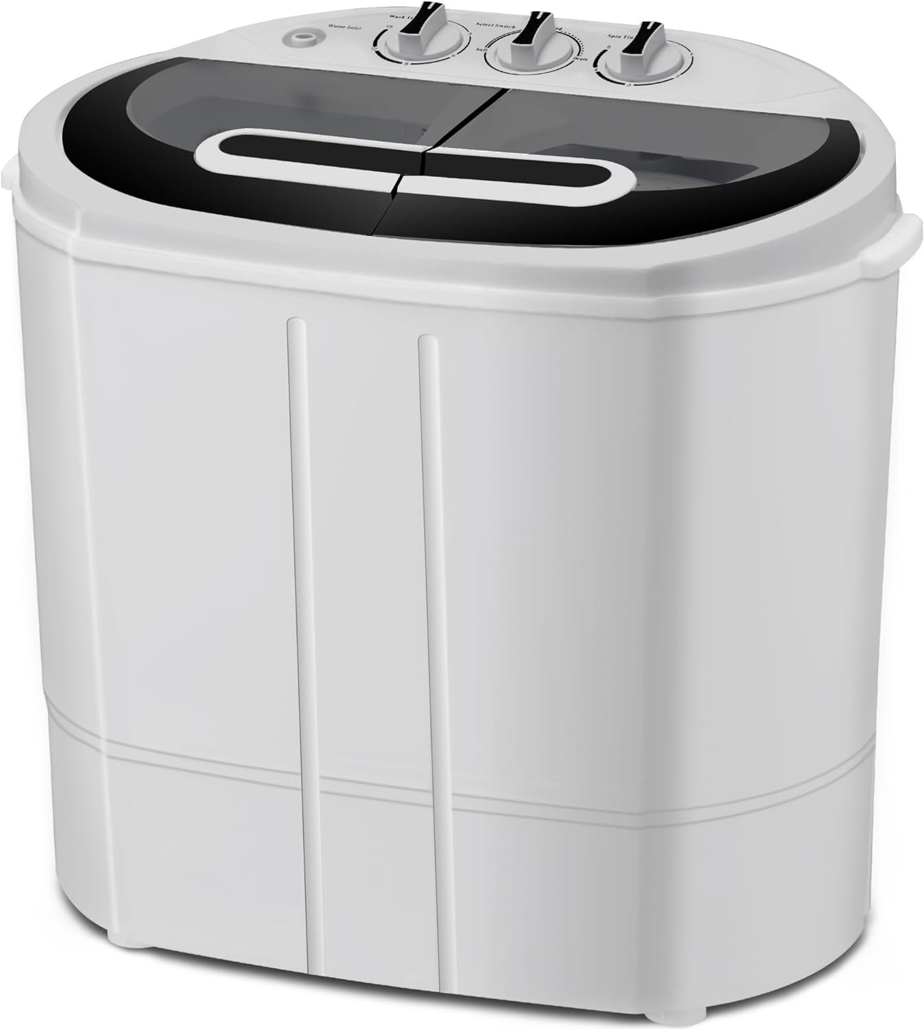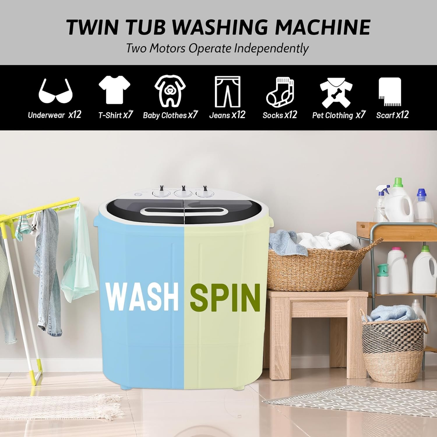 Outspurge Portable Washing Machine, 15lbs Twin Tub Washer 2 In 1 Mini Compact Laundry Machine, 9lbs Washer & 6lbs Spinner Combo for Dorms, Apartments, RVs(Black)