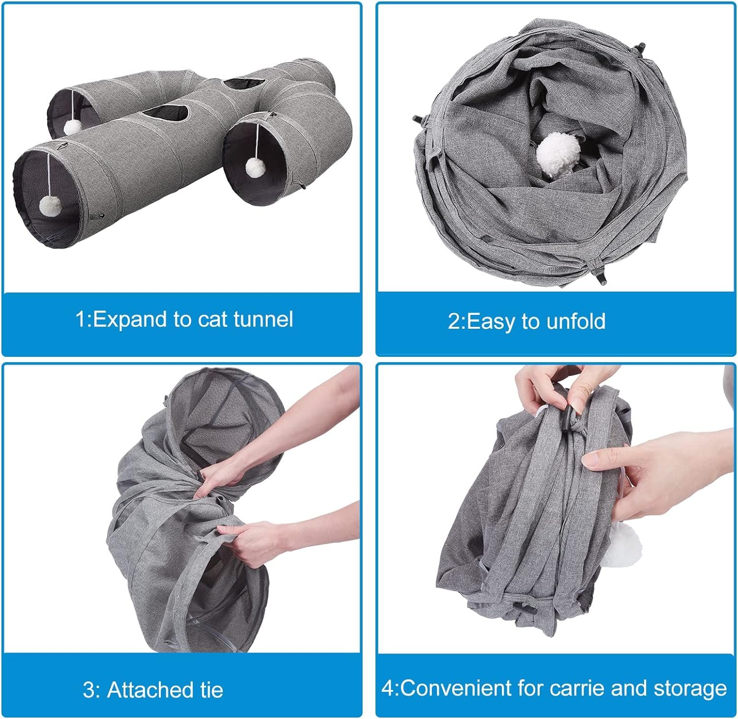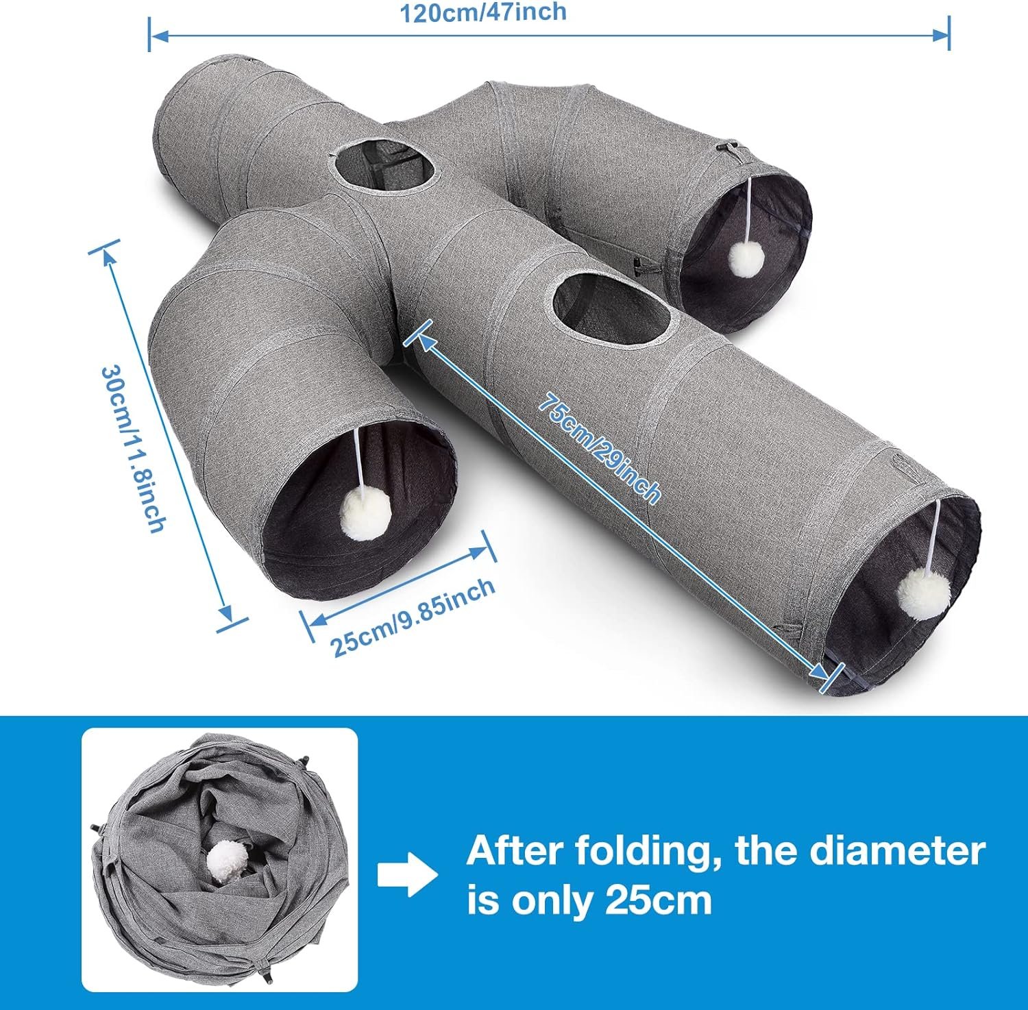Keep Your Pet Active: We provide hanging balls and peepholes on the cat tube to allow your cat to engage in additional entertainment activities. The small ball toy hanging in the middle of the cat tunnel can stimulate the cat’s curiosity. Additional feather wand can increase interaction with cats.